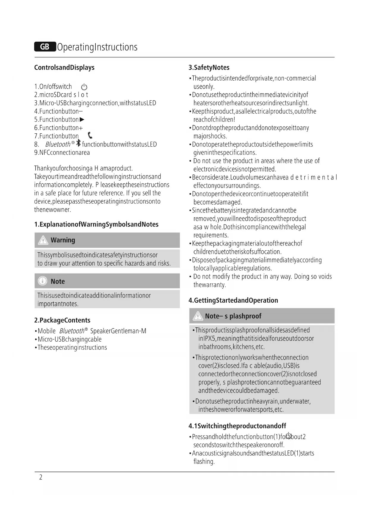 - If the battery capacity is less than 10%, the speaker will emit two acoustic signals. Youwill only receive this information if the speaker is on.