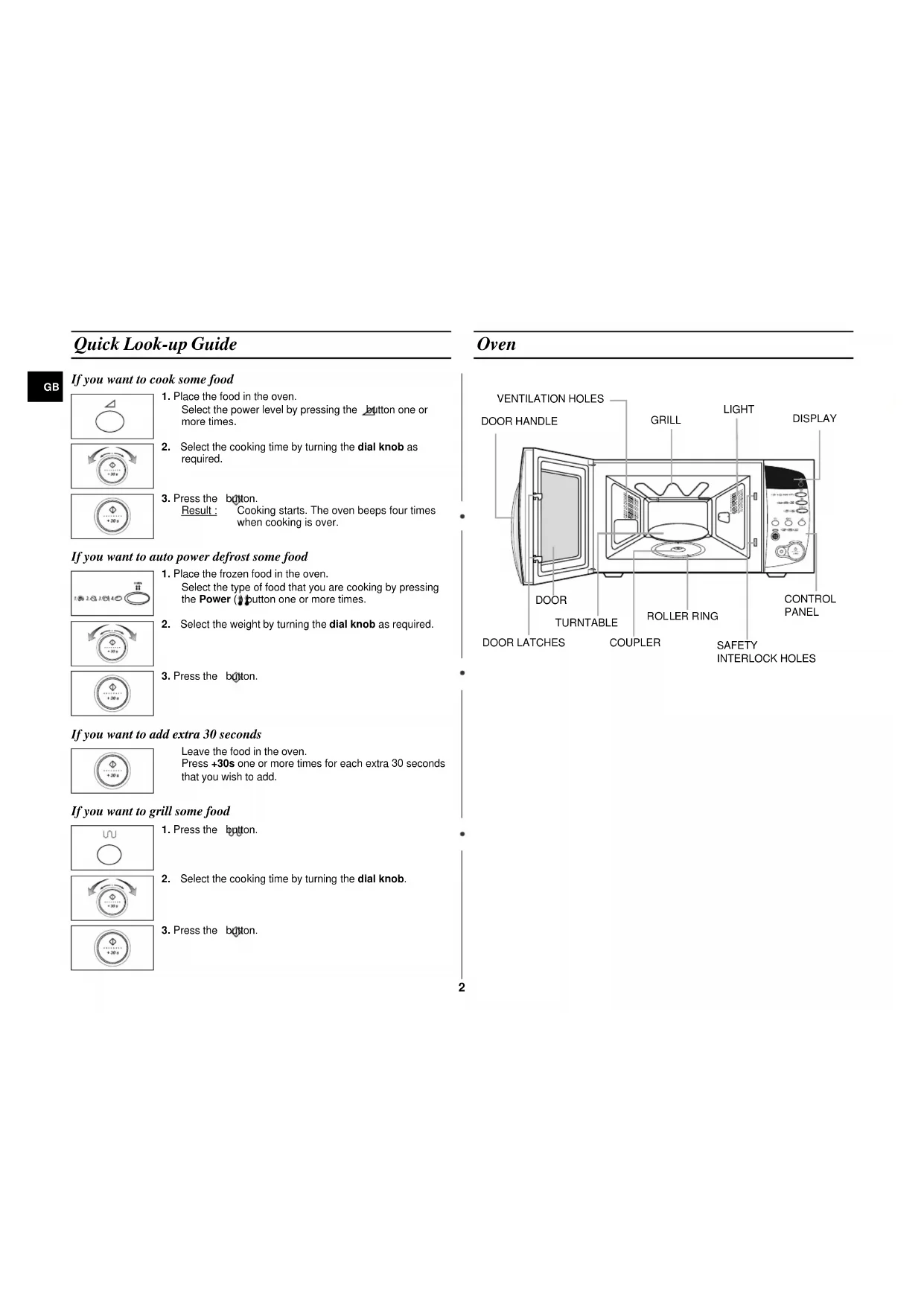 Quick Look-up Guide If you want to cook some food If you want to auto power defrost some food If you want to add extra 30 seconds If you want to grill some food Oven
