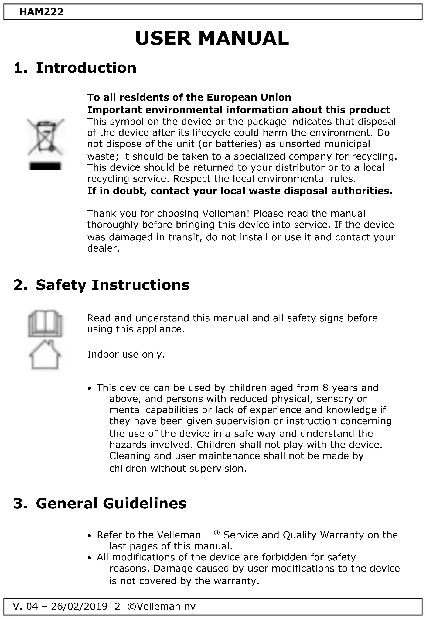 USER MANUAL HAM222 VELLEMAN