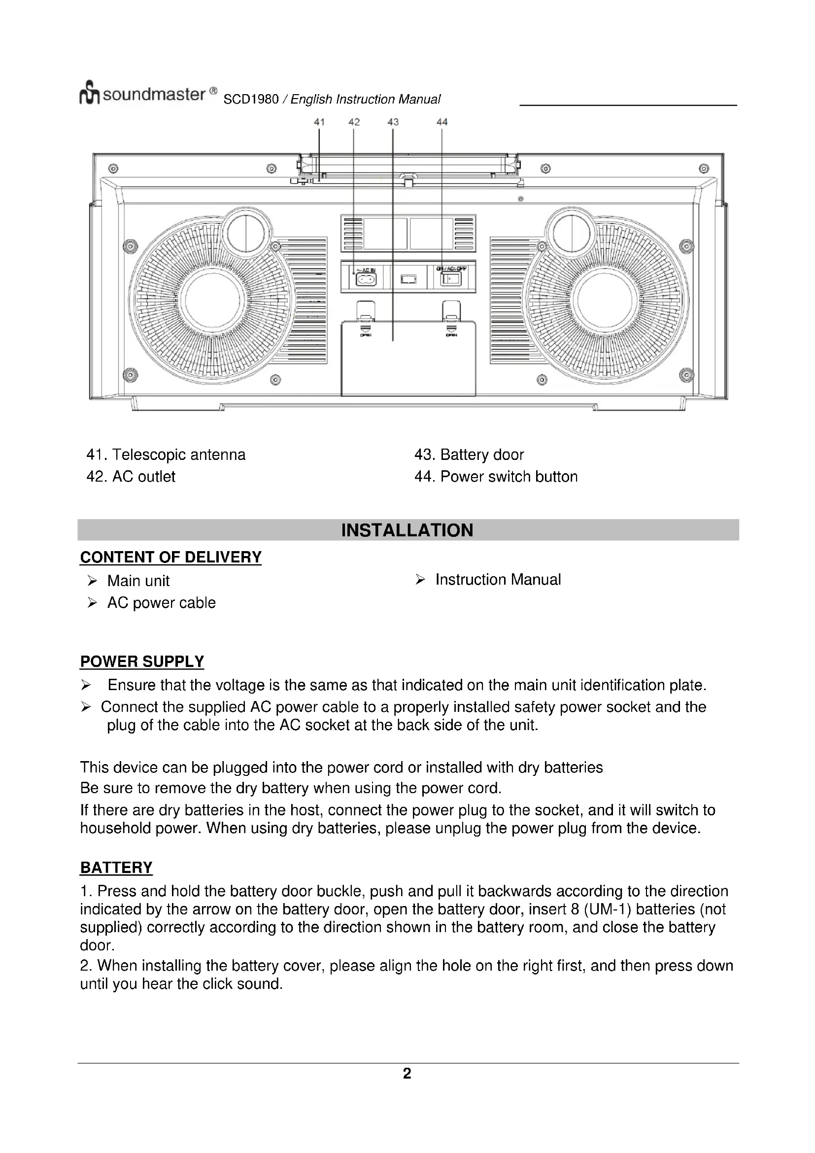 USER MANUAL SCD1980 Soundmaster