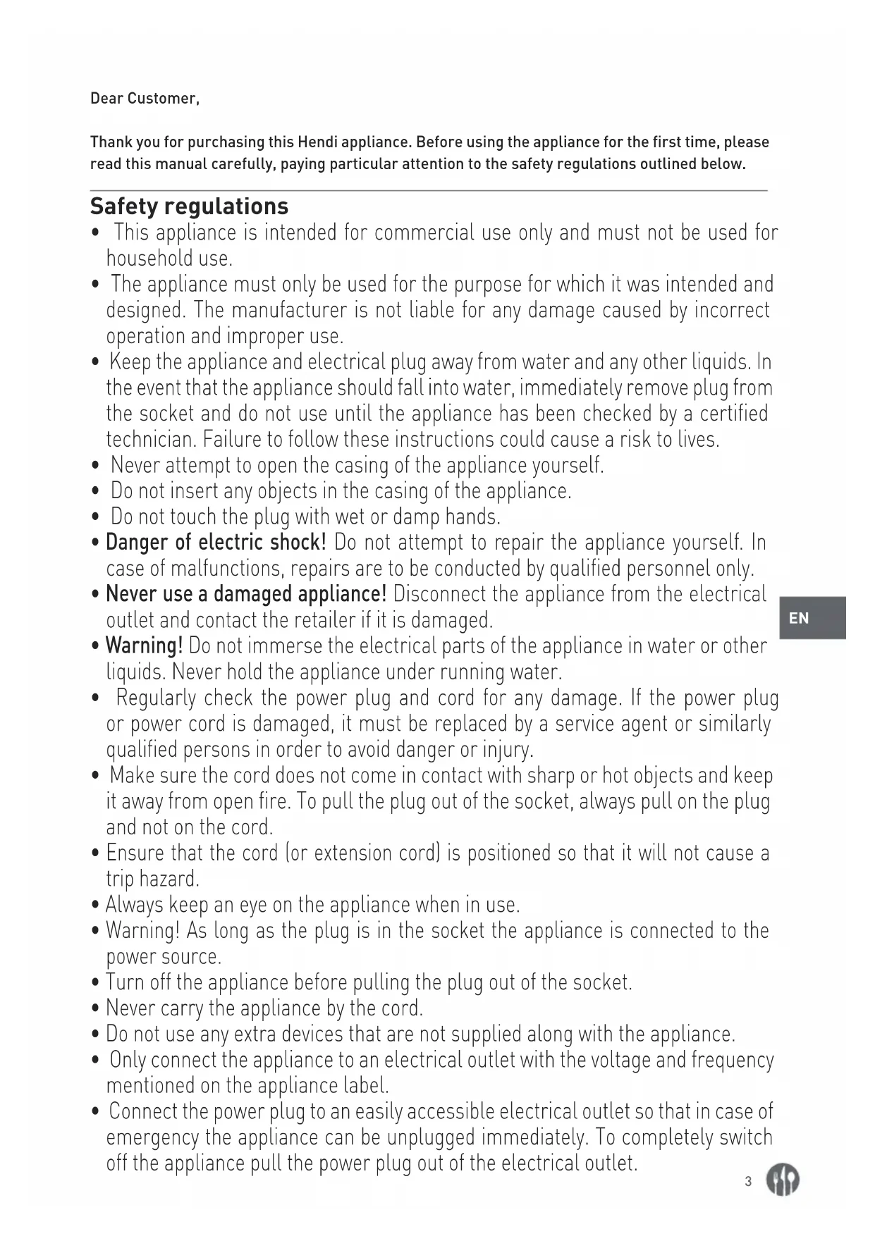 - This appliance should be operated by trained personnel in kitchen of the restau