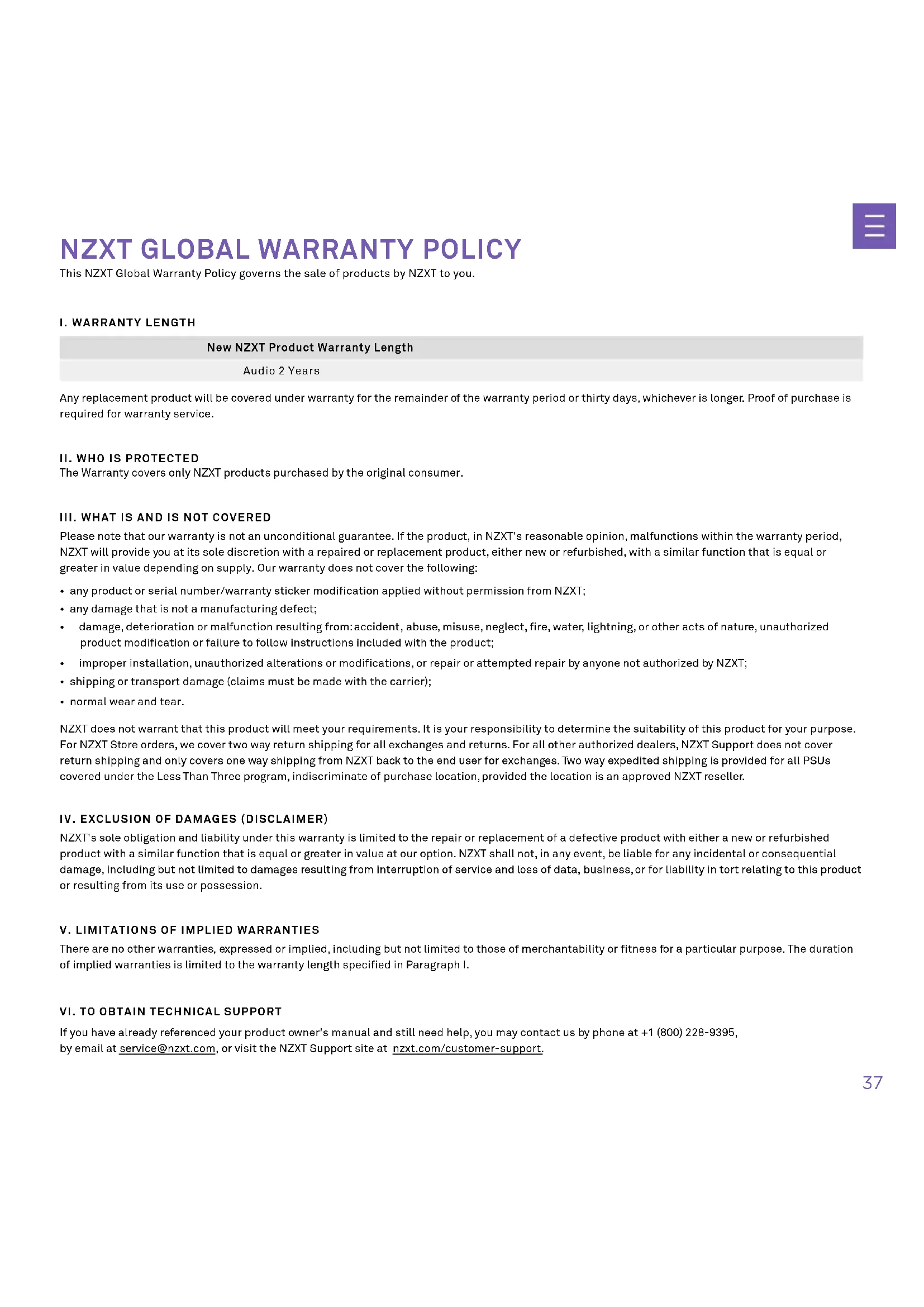 VII. HOW TO OBTAIN A WARRANTY SERVICE FROM NZXT