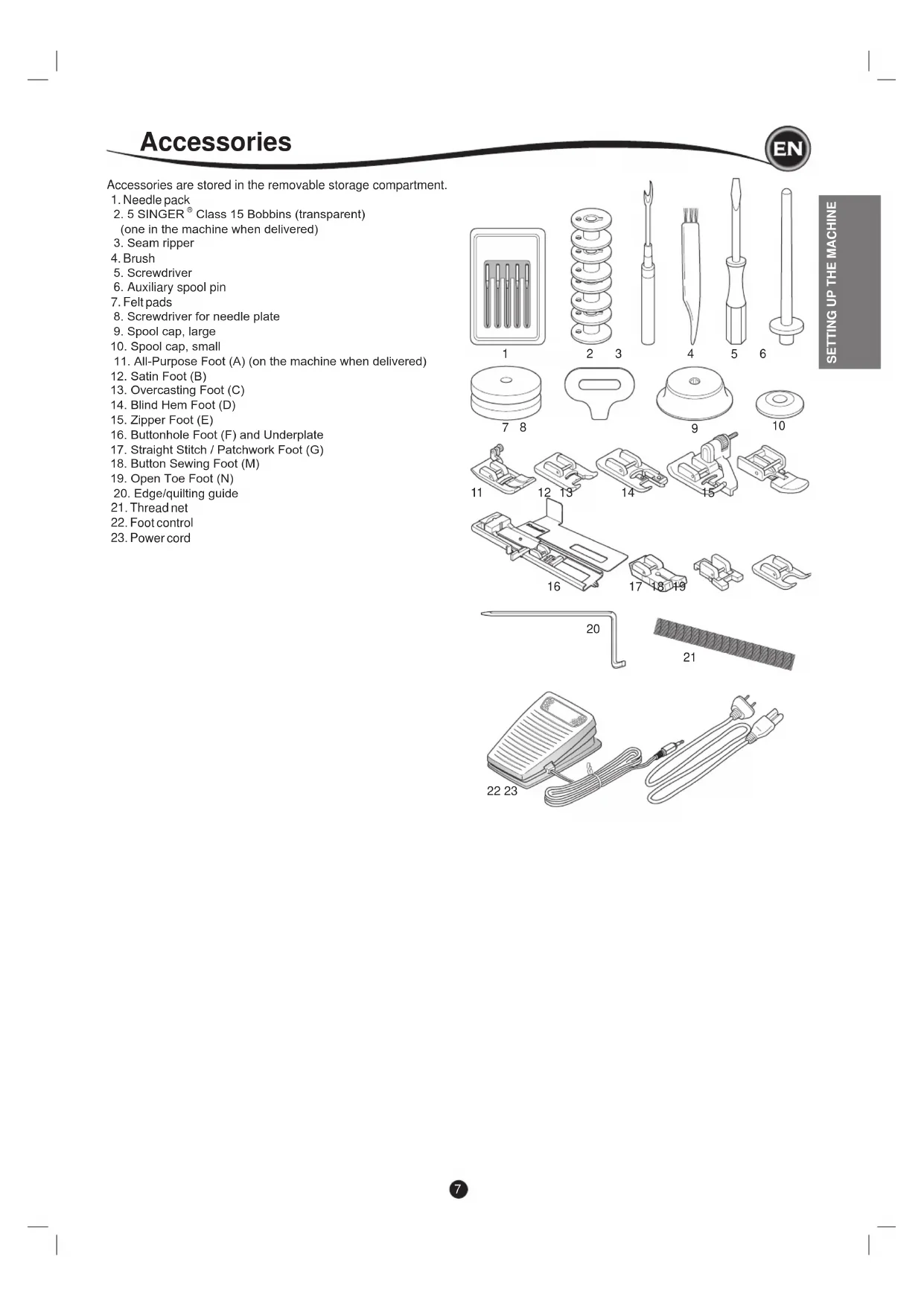 - The foot control is used to operate the machine. Avoid placing other objects on the foot control.
