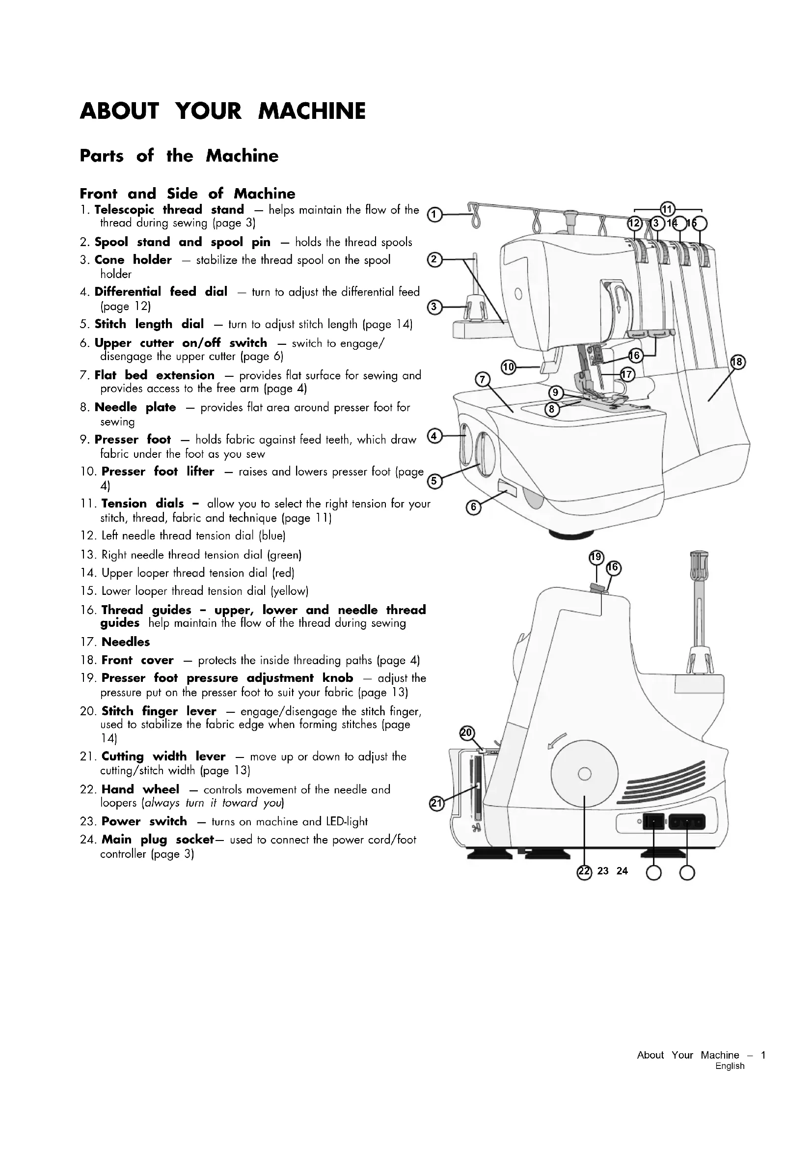 18. Front cover — protects the inside threading paths (page 4)