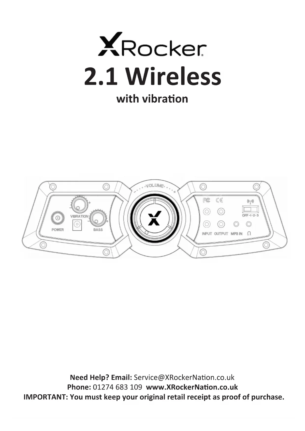 Need Help? Email: Service@XRockerNaon.co.uk Phone: 01274 683 109 www.XRockerNaon.co.uk IMPORTANT: You must keep your original retail receipt as proof of purchase.