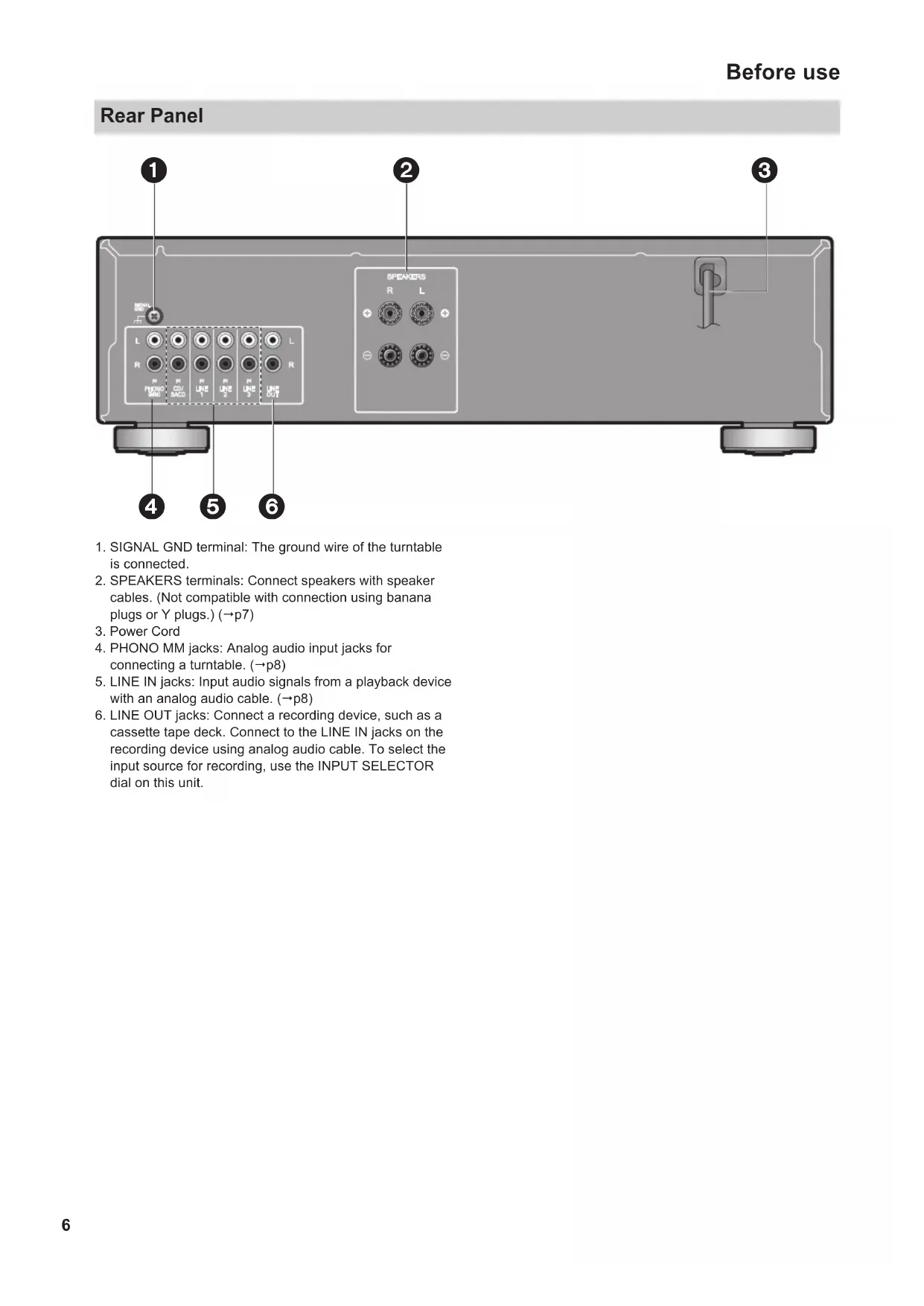 0 Connect speakers with 4 ≠ to 16 ≠ impedance. 0 The power cord must be connected only after all other cable connections are completed.0 We will not accept responsibility for damage arising from the connection of equipment manufactured by other companies.0 Specifications and appearance are subject to change without prior notice. Table of Contents What’s in the box