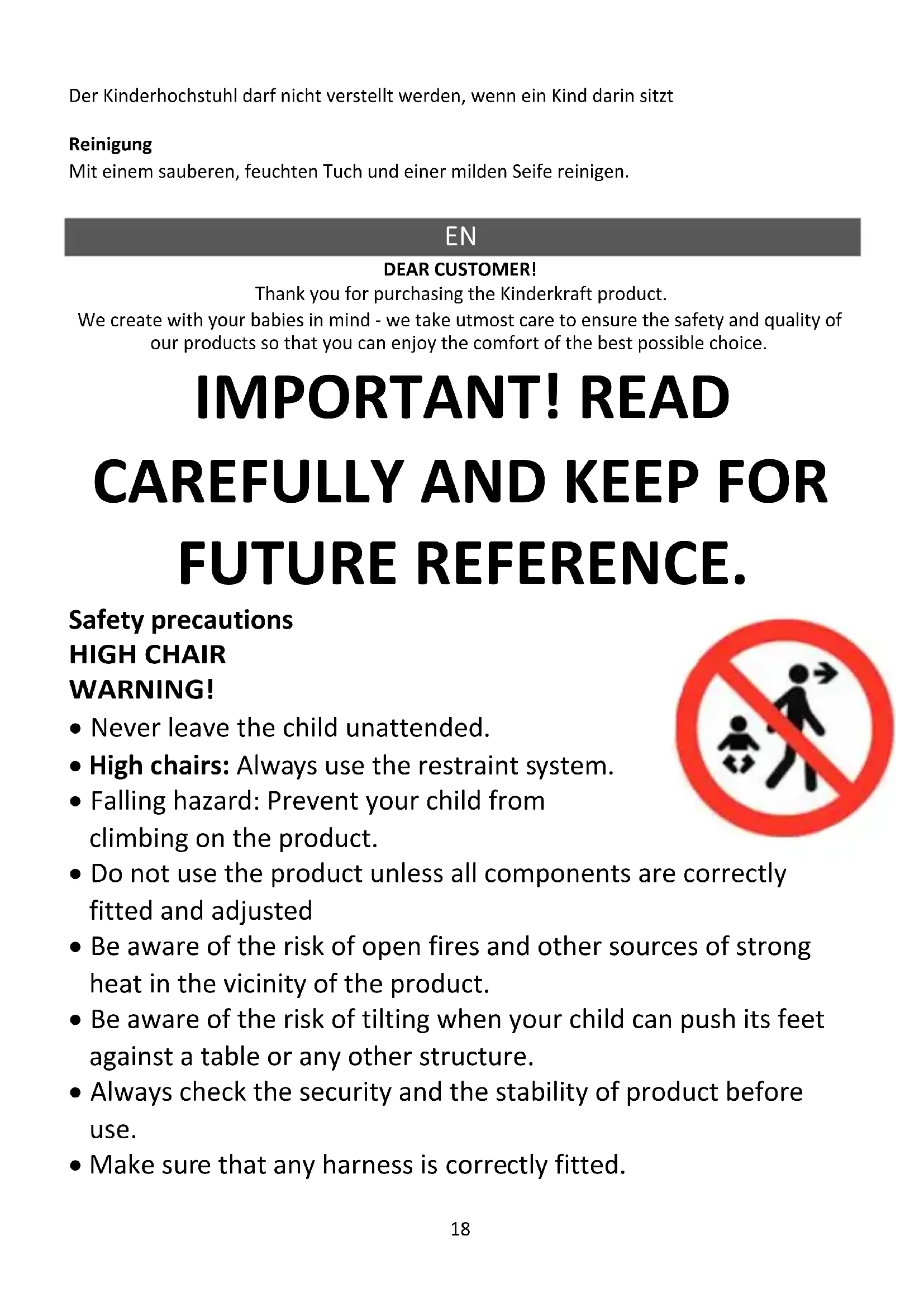 DEAR CUSTOMER! Thank you for purchasing the Kinderkraft product. We create with your babies in mind - we take utmost care to ensure the safety and quality of our products so that you can enjoy the comfort of the best possible choice. IMPORTANT! READ