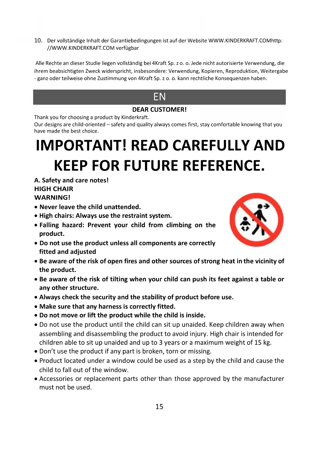 DEAR CUSTOMER! Thank you for choosing a product by Kinderkraft. Our designs are child-oriented – safety and quality always comes first, stay comfortable knowing that you have made the best choice.