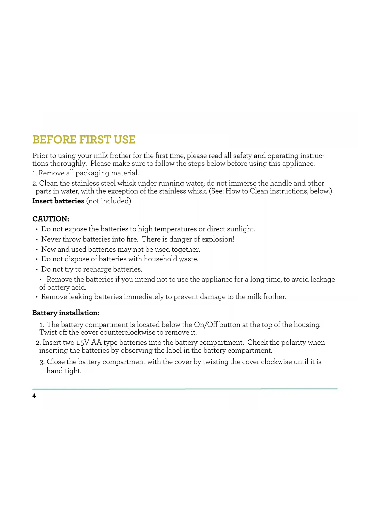 Prior to using your milk frother for the first time, please read all safety and operating instruc- tions thoroughly. Please make sure to follow the steps below before using this appliance.