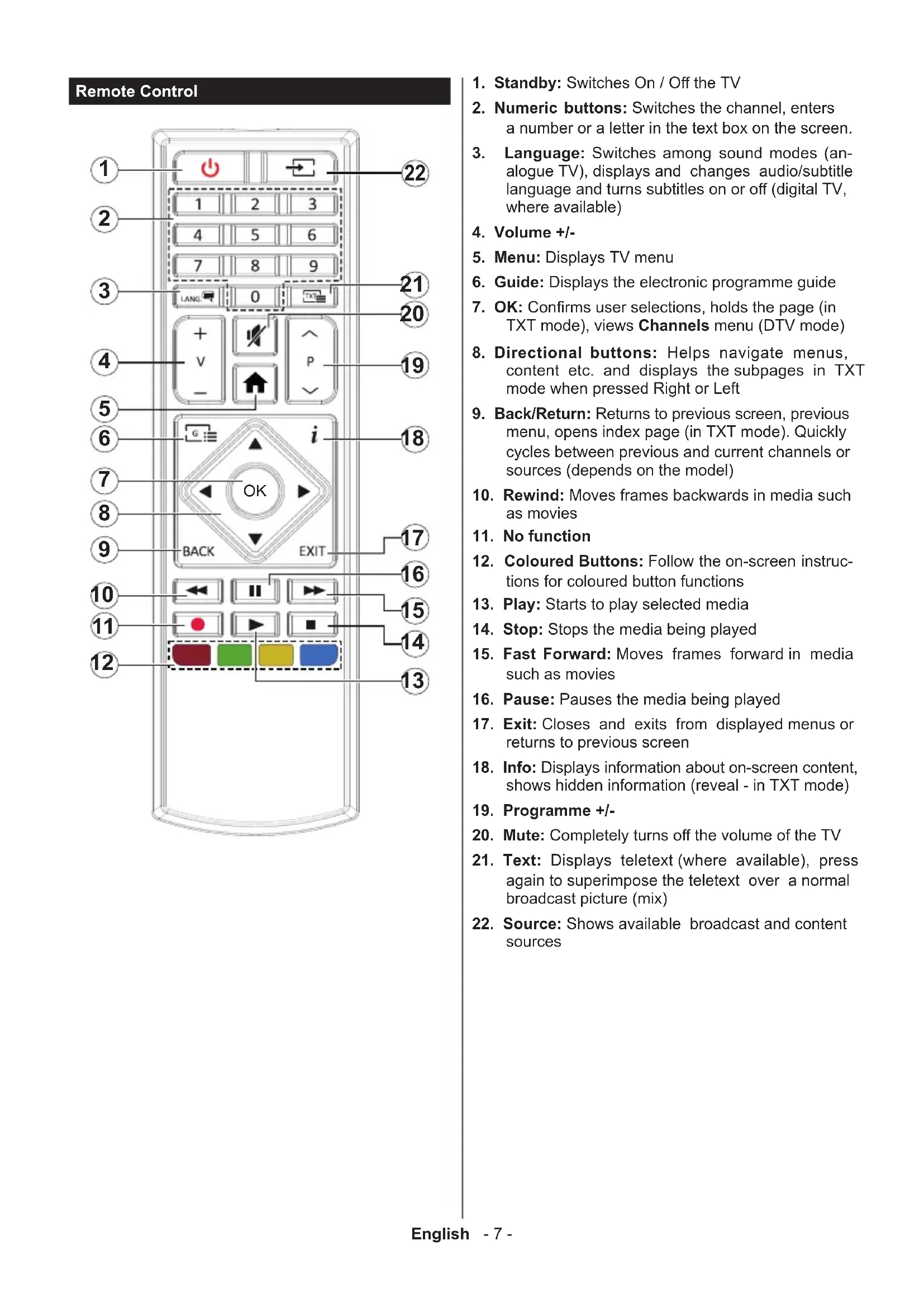 English - 7 - Remote Control