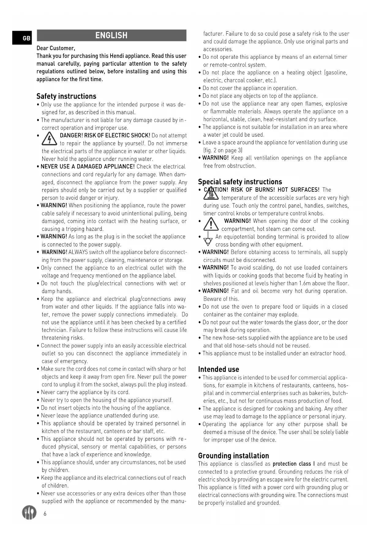 ENGLISH Dear Customer, Thank you for purchasing this Hendi appliance. Read this user manual carefully, paying particular attention to the safety regulations outlined below, before installing and using this appliance for the first time. Safety instructions