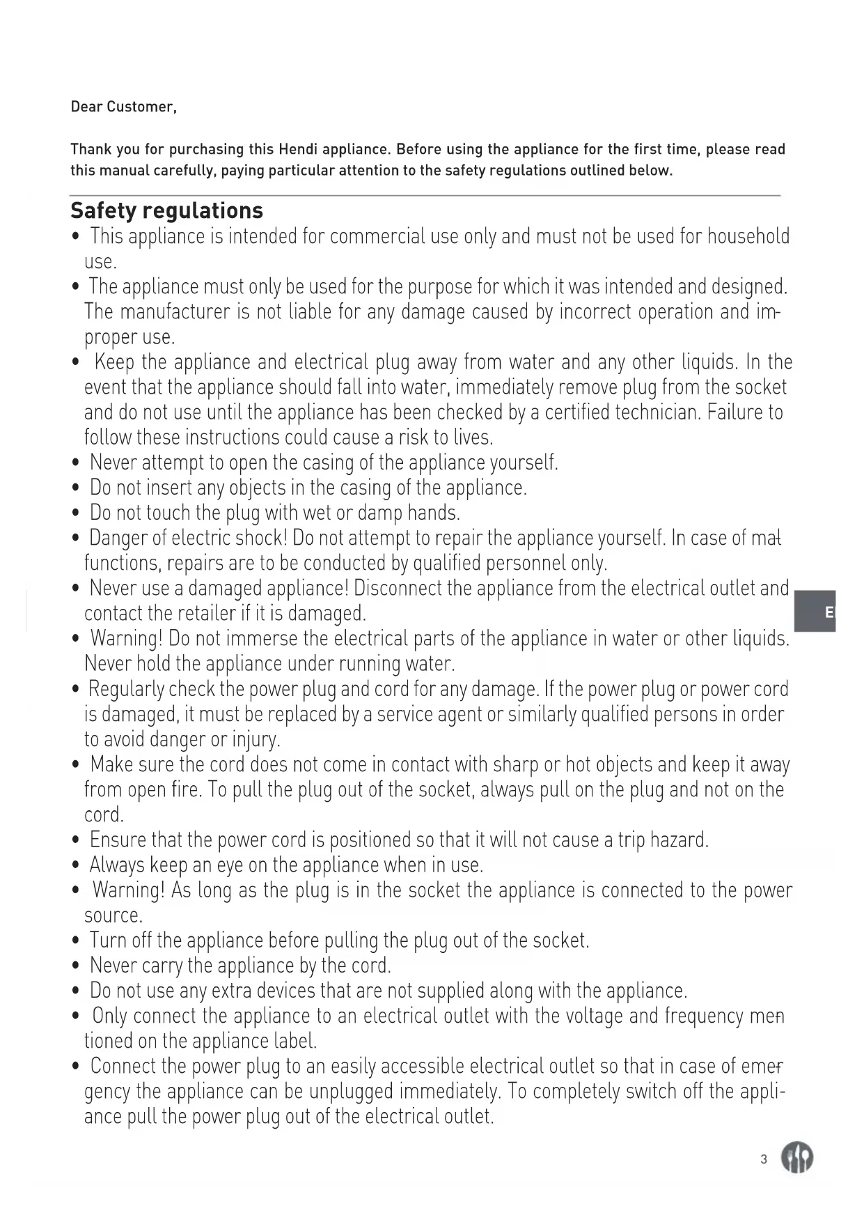 - This appliance exclusively meant for private commercial use and should not be used for household use.