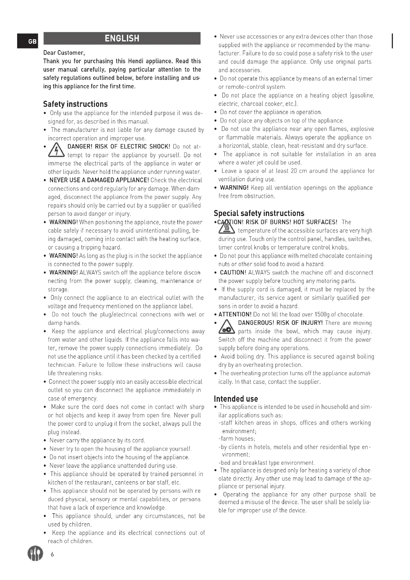 ENGLISH Dear Customer, Thank you for purchasing this Hendi appliance. Read this user manual carefully, paying particular attention to the safety regulations outlined below, before installing and us