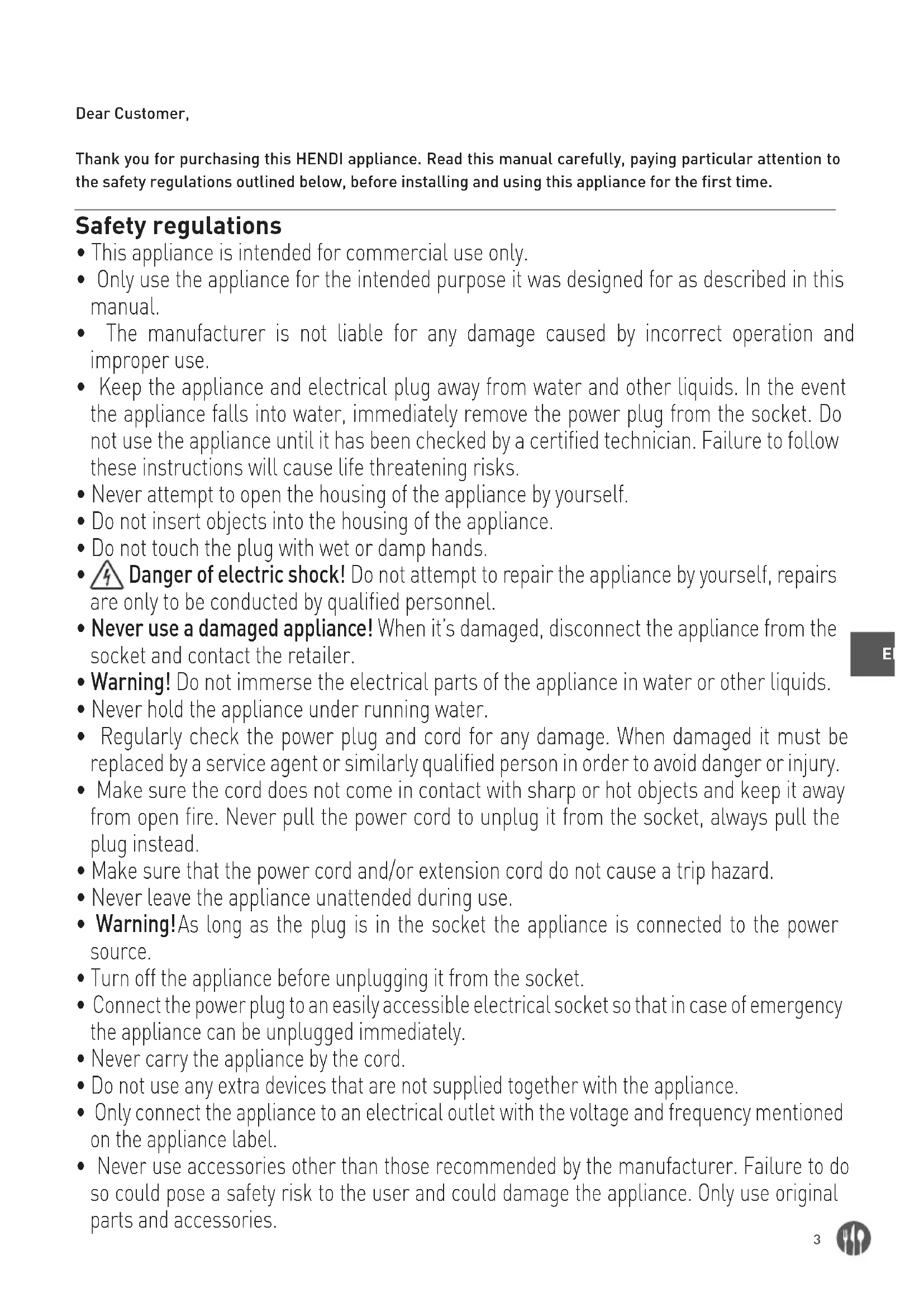 Download the instructions for your Uncategorized in PDF format for free! Find your manual 210017 - Hendi and take your electronic device back in hand. On this page are published all the documents necessary for the use of your device. 210017 by Hendi.