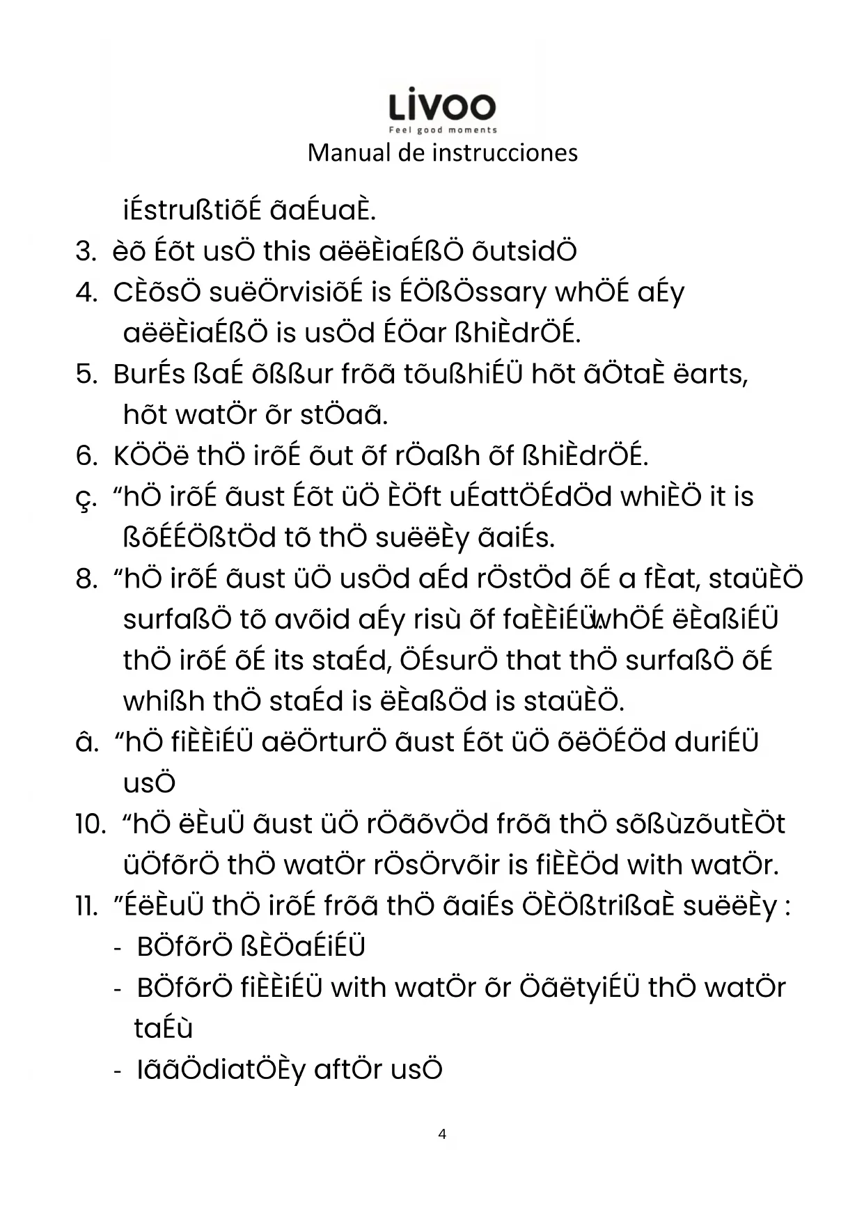 7. The iron must not be left unattended while it is