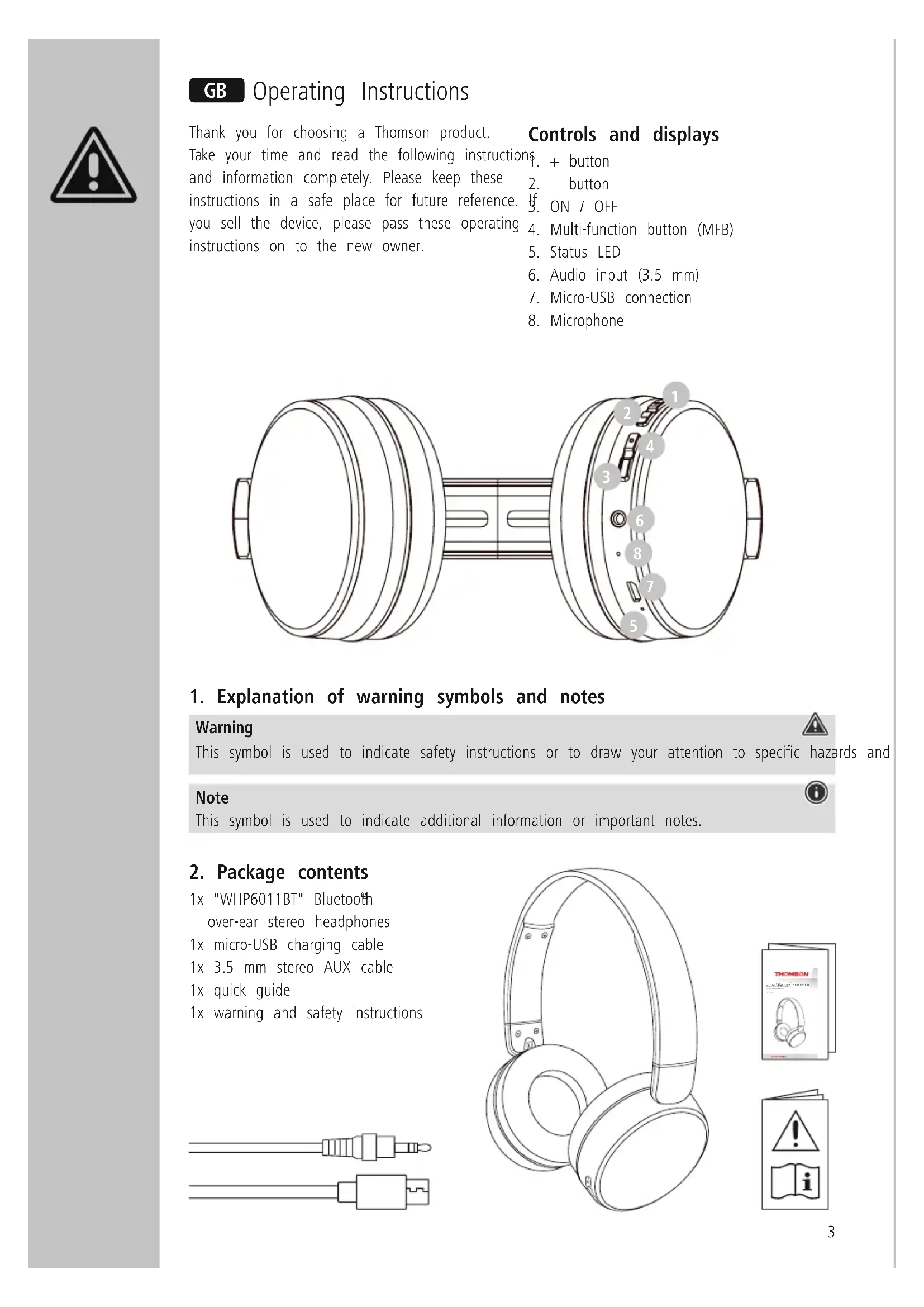 Download the instructions for your Earphones in PDF format for free! Find your manual WHP6011BT - THOMSON and take your electronic device back in hand. On this page are published all the documents necessary for the use of your device. WHP6011BT by THOMSON.