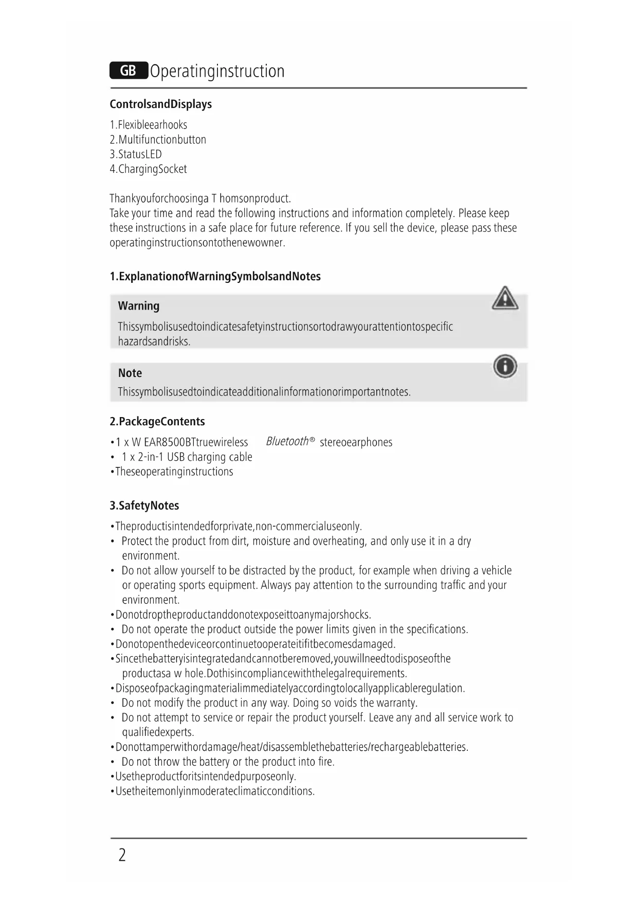 WEAR8500BT - Earphones THOMSON - Free user manual and instructions