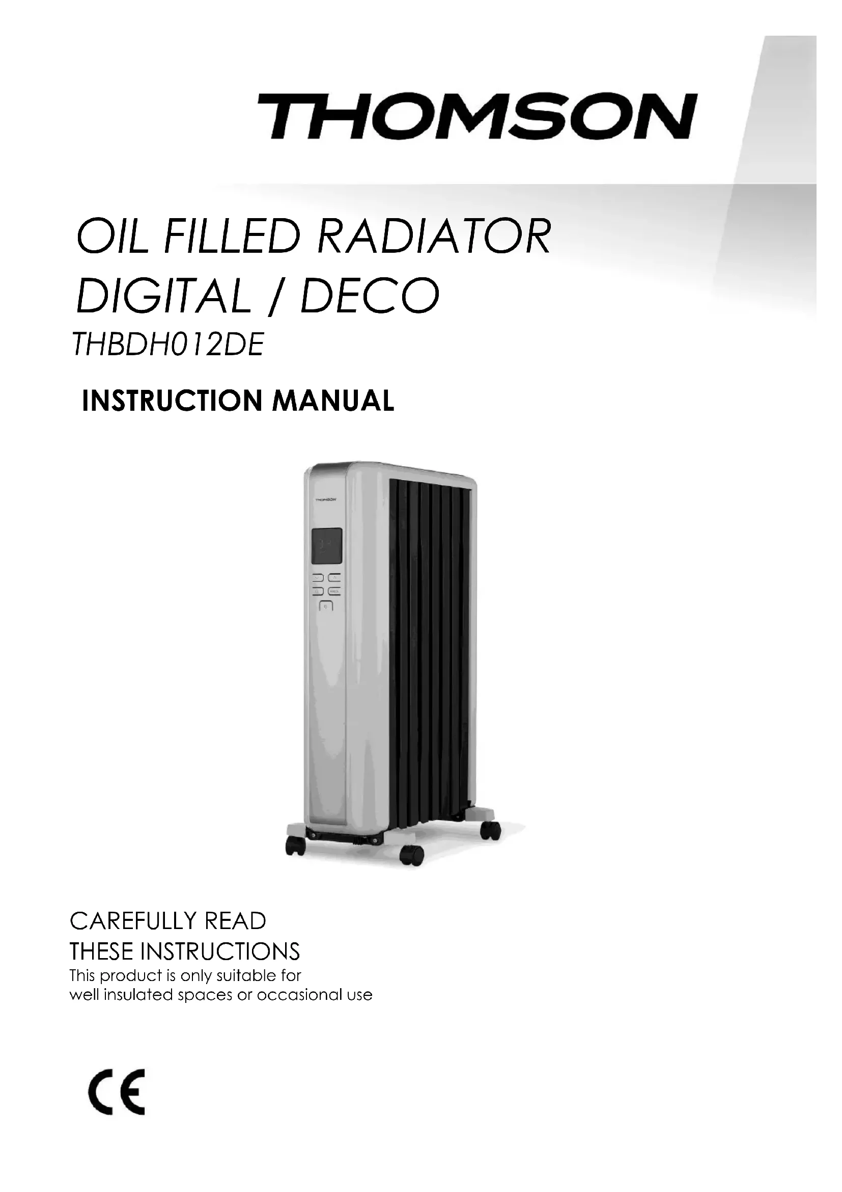 DIGITAL / DECO THBDH012DE INSTRUCTION MANUAL CAREFULLY READ THESE INSTRUCTIONS This product is only suitable for well insulated spaces or occasional useSAFETY RECOMMENDATIONS Warning! The heater must not be switched on, only when the wheels are fully mounted.
