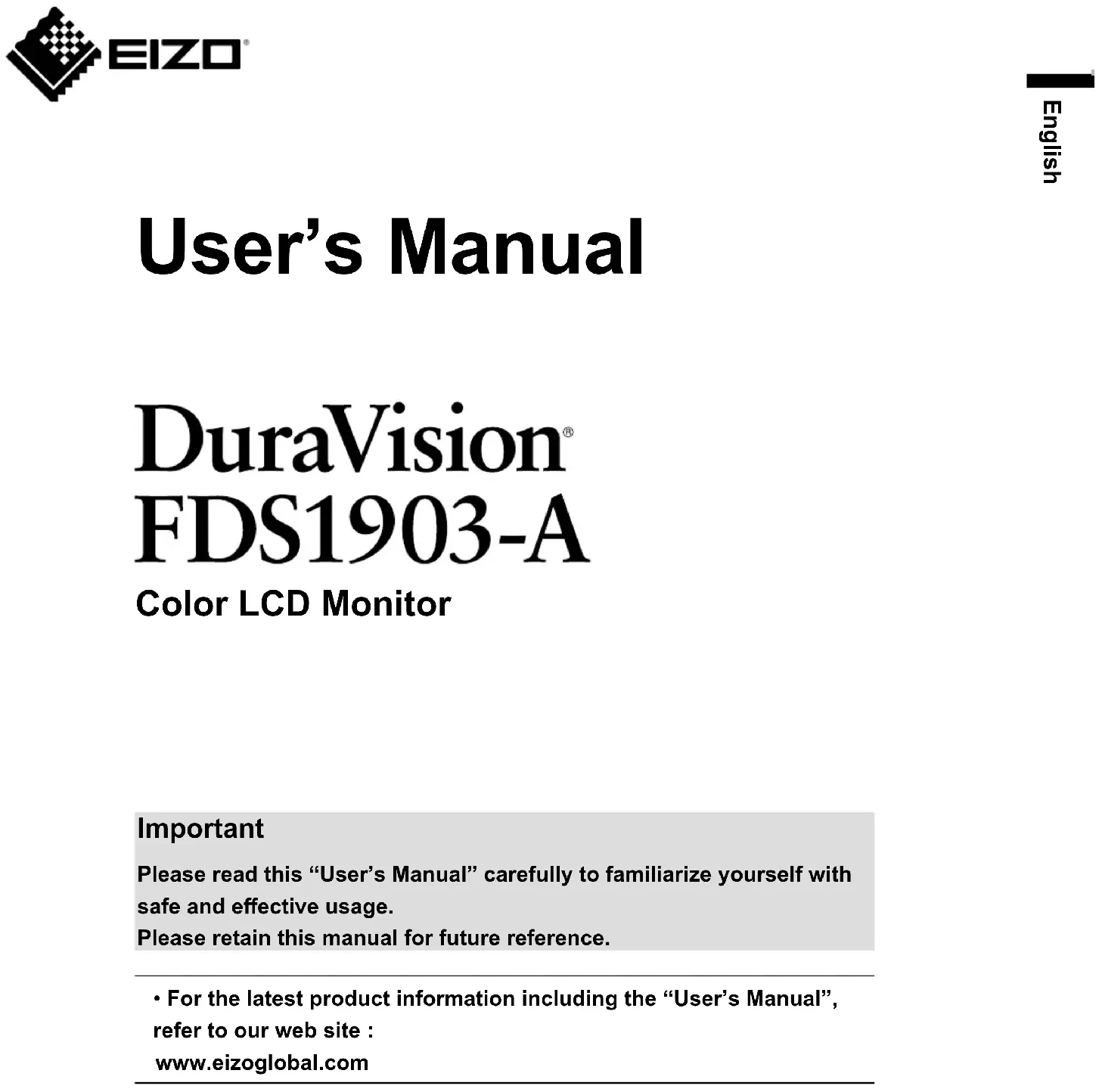 DuraVision FDS1903-A - Monitor EIZO - Free user manual and instructions