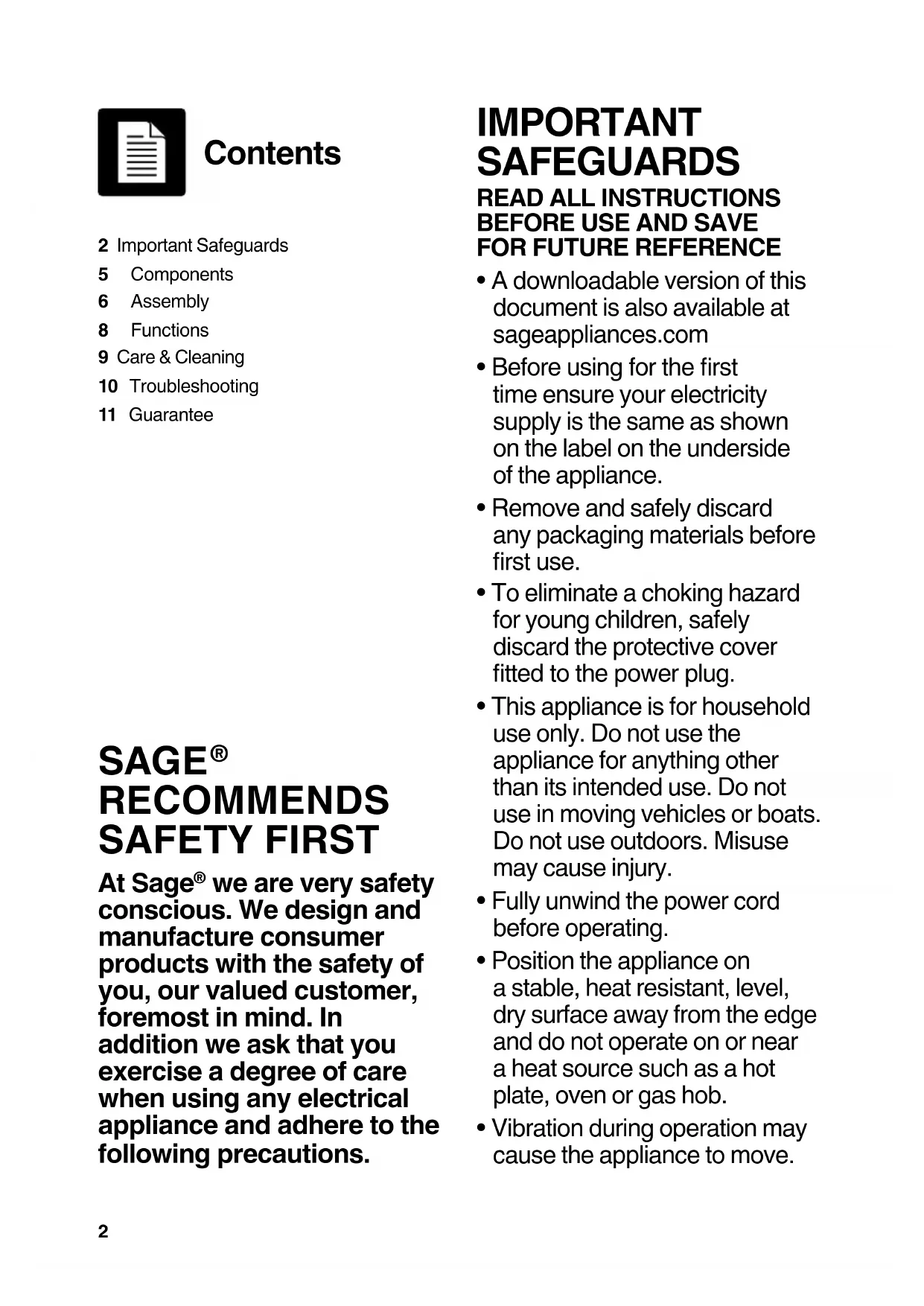 - A downloadable version of this document is also available at sageappliances.com