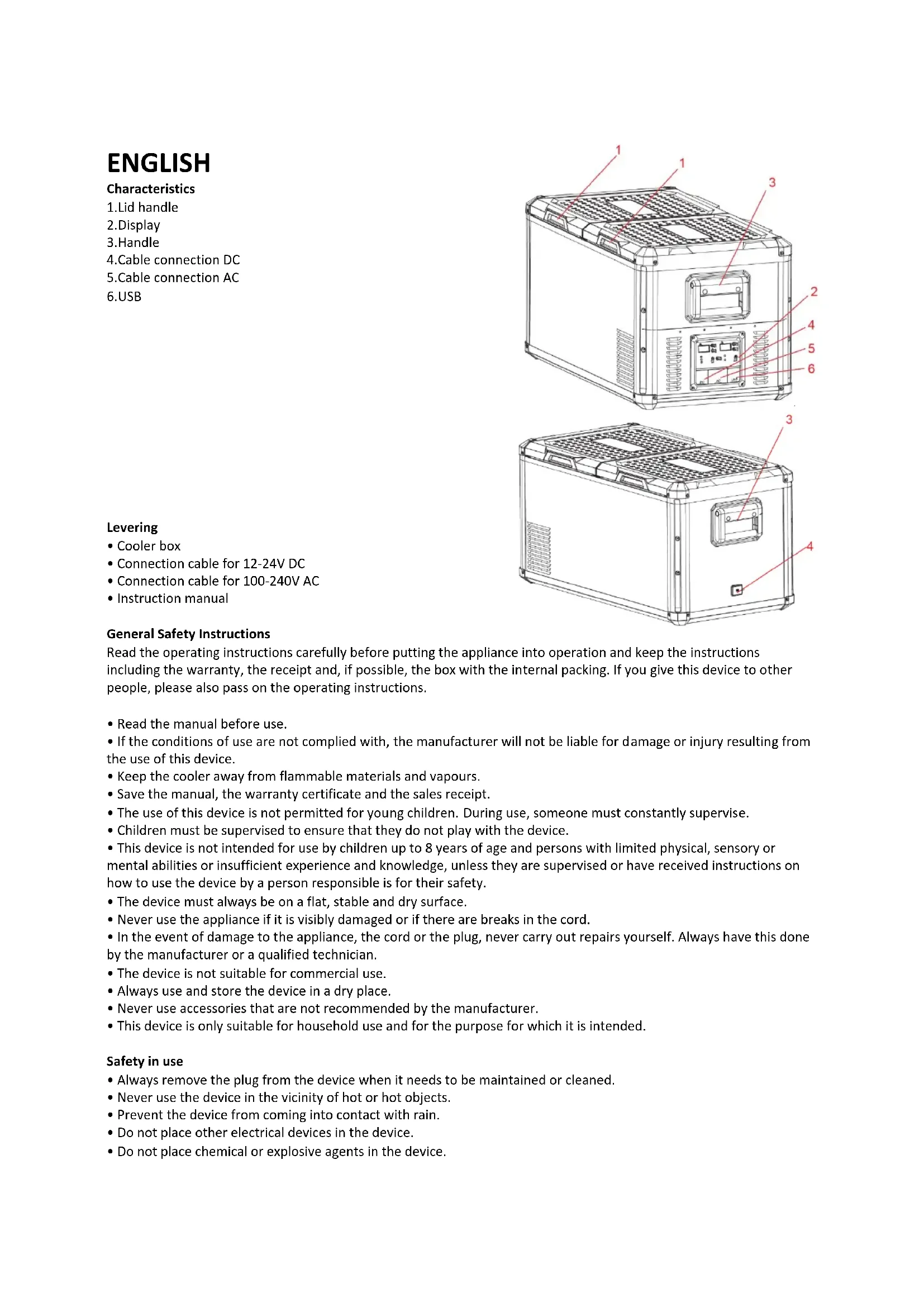 - Keep the cooler away from flammable materials and vapours.