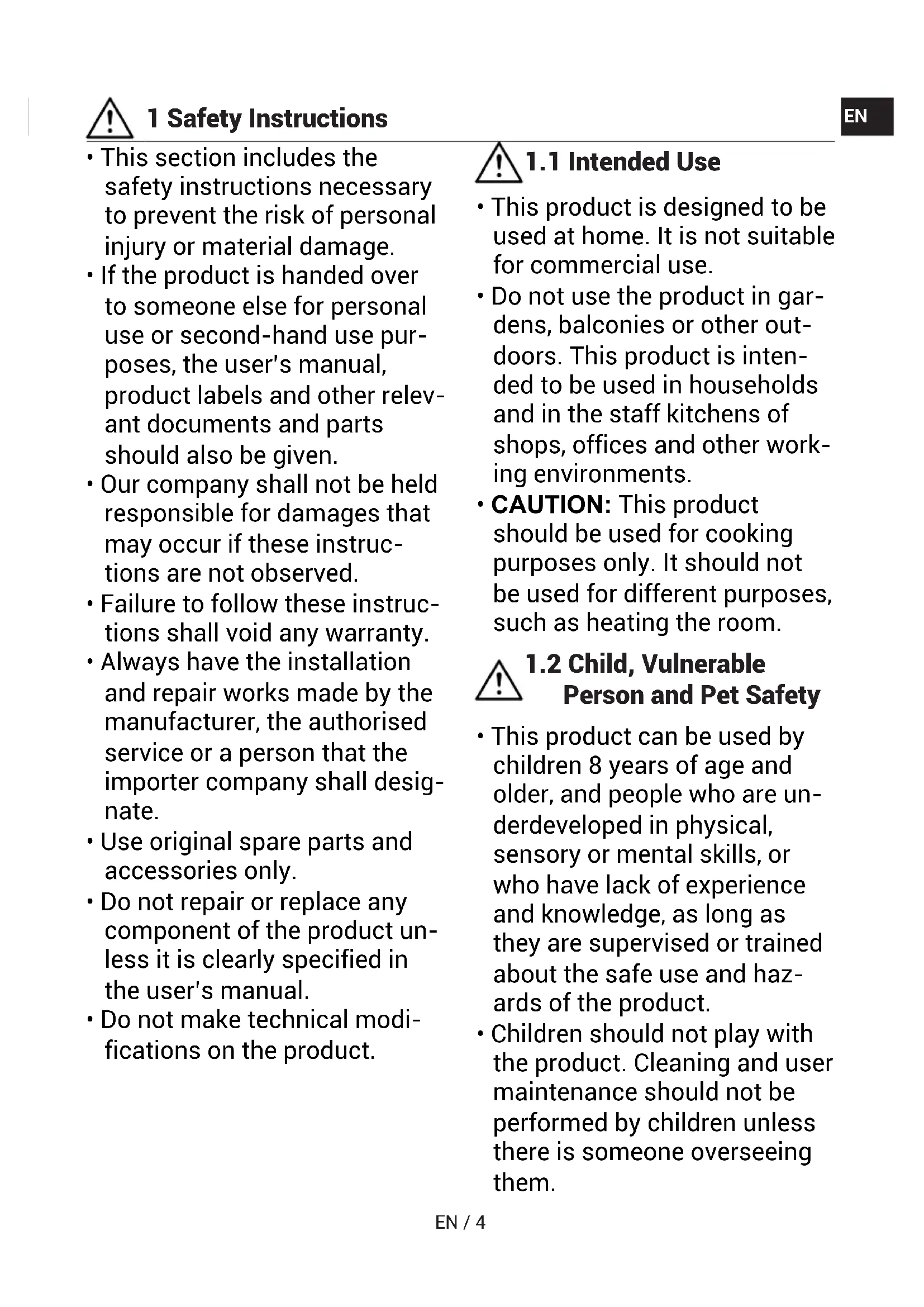 - CAUTION: This product should be used for cooking purposes only. It should not be used for different purposes, such as heating the room.