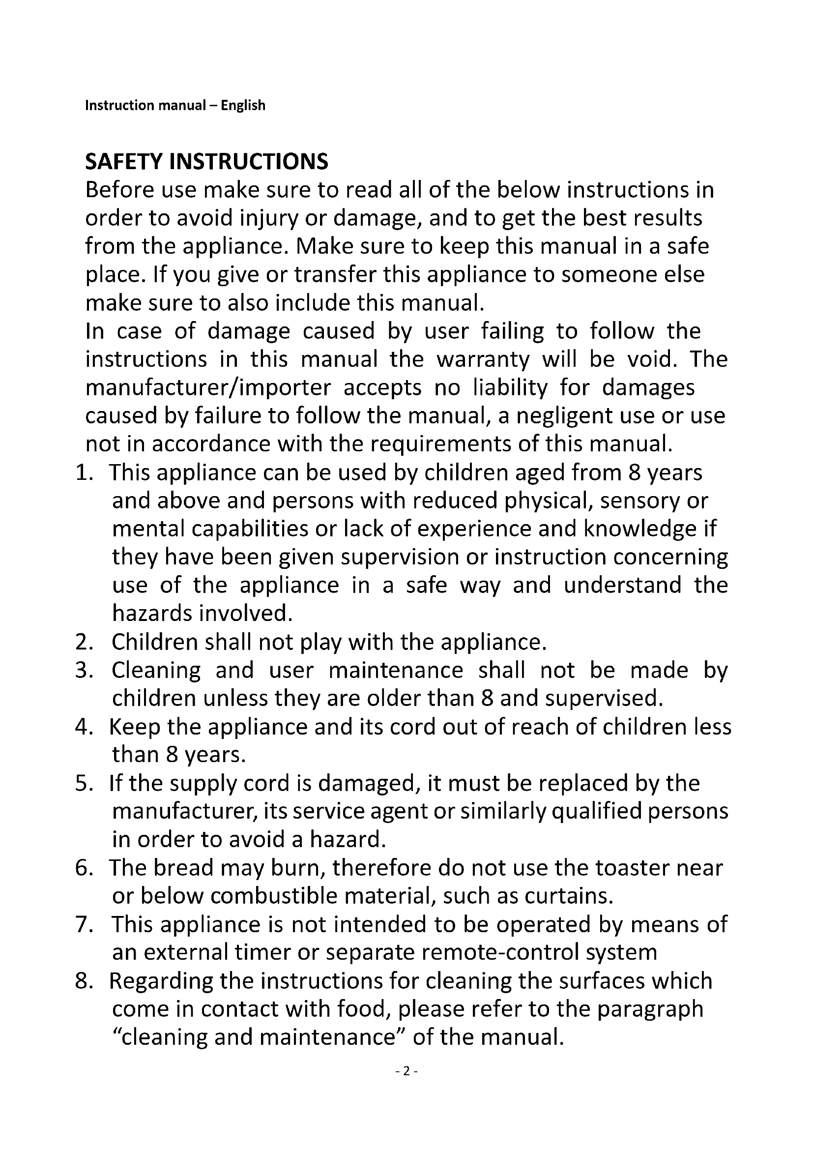 2. Children shall not play with the appliance.