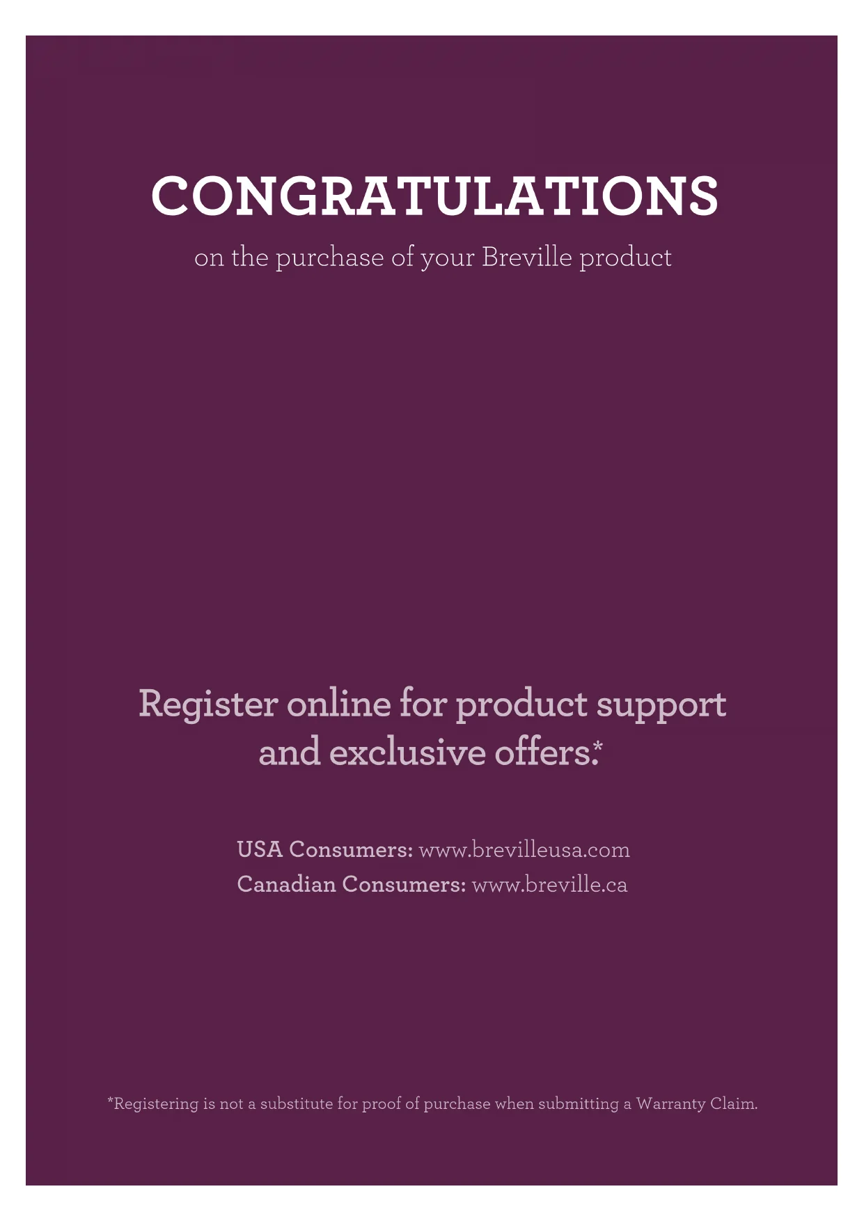- Do not operate any appliance with a damaged cord or plug or after the appliance malfunctions, or has been damaged in any other manner. Immediately cease use and call Breville Consumer Support for examination, repair or adjustment.