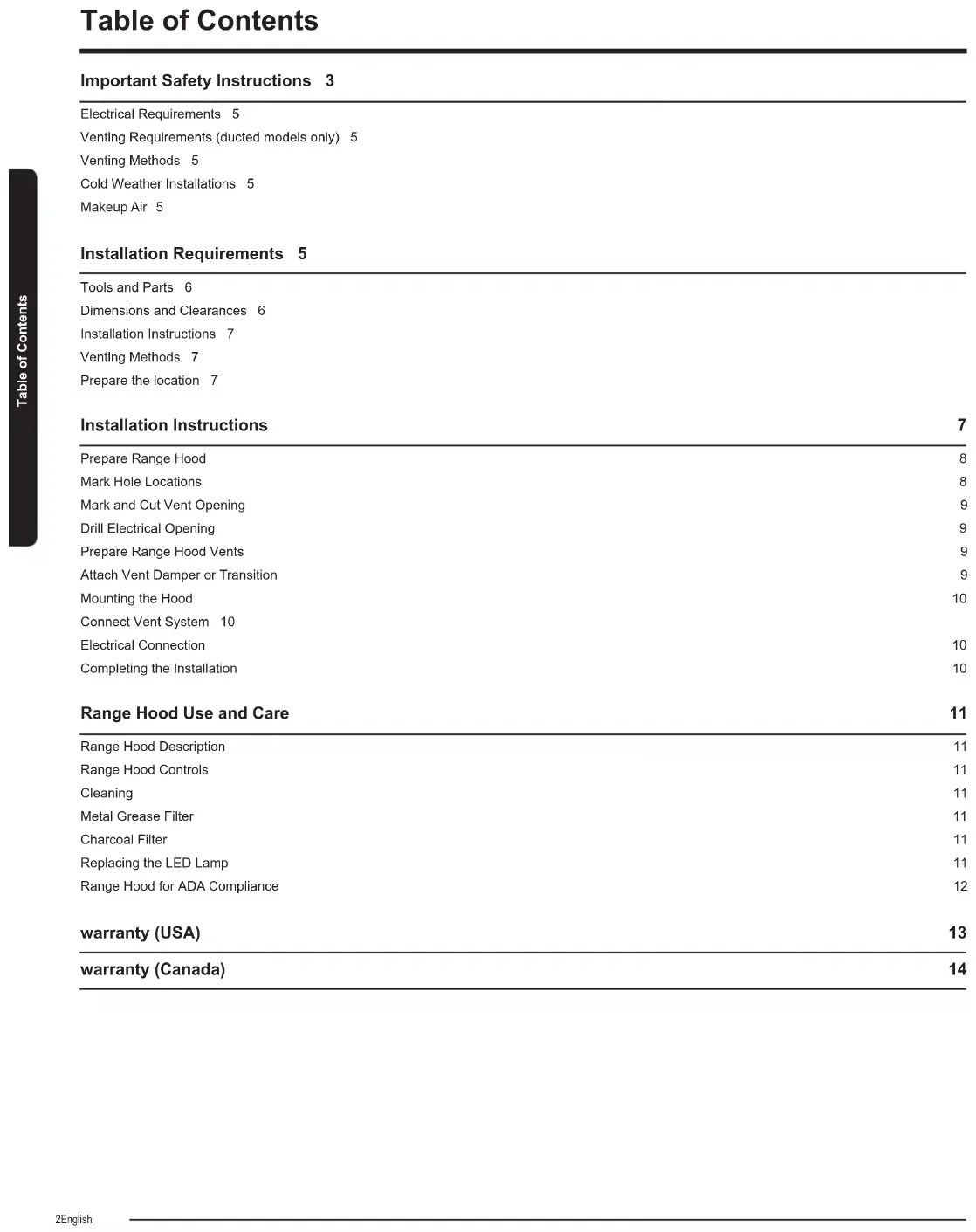 - Keep these Installation Instructions Guide close to range hood for easy reference. Installation Instructions Installation InstructionsEnglish 11 Range Hood use and Care Range Hood Description