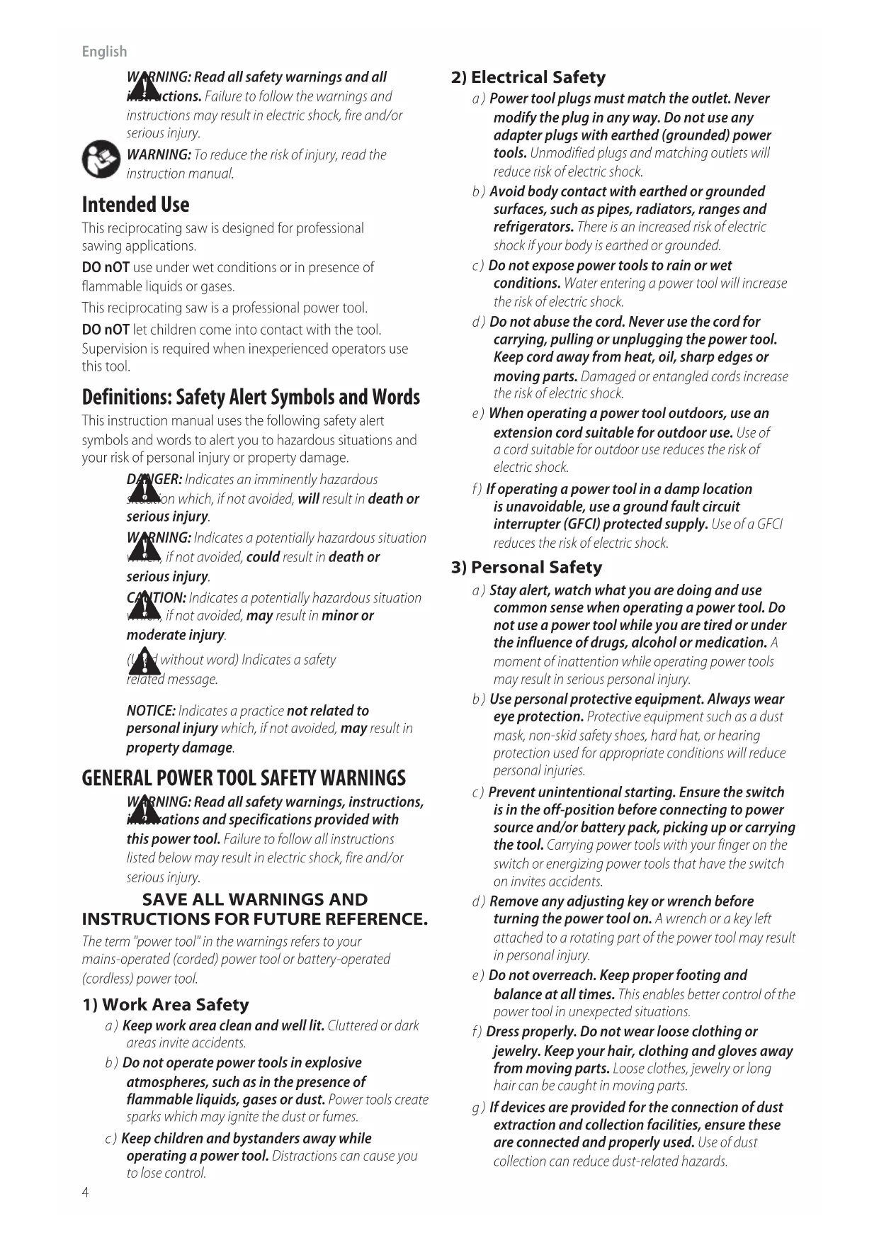 instructionmanual.5 English Additional Safety Instructions for Reciprocating Saws