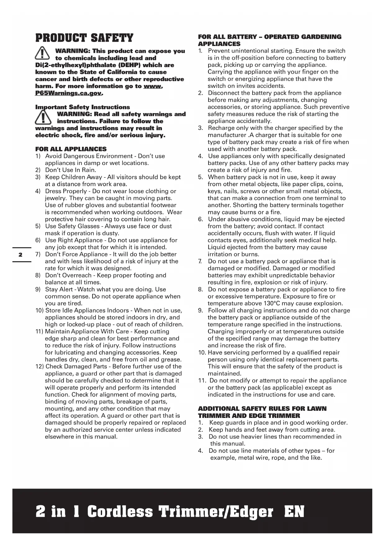 102 in 1 Cordless Trimmer/Edger EN