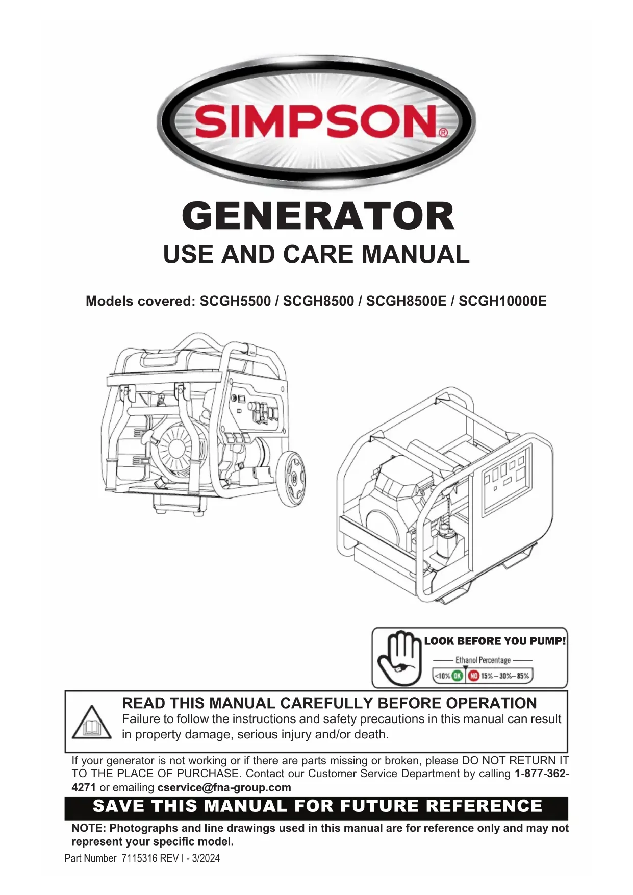 SCGH8500E - Generator Simpson - Free user manual and instructions