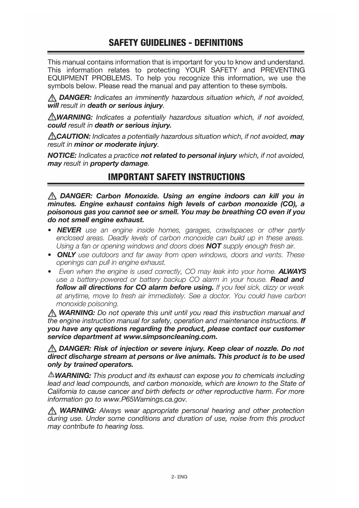 the engine instruction manual for safety, operation and maintenance instructions. If you have any questions regarding the product, please contact our customer service department at www.simpsoncleaning.com.