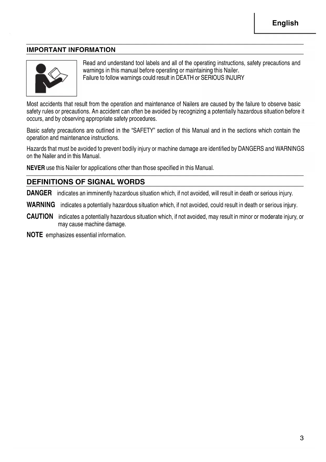 understand this MANUAL operate the Nailer.