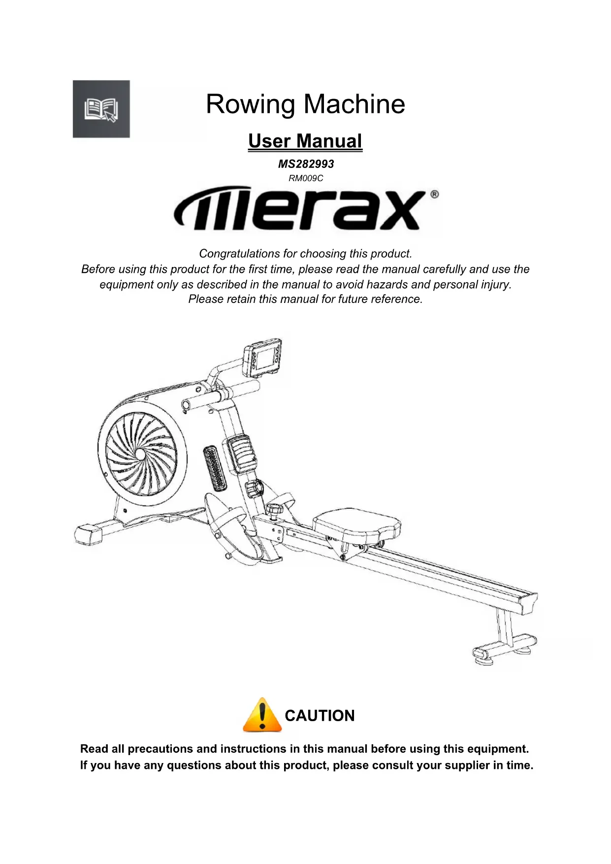 Download the instructions for your Rowing Machine in PDF format for free! Find your manual MS282993 - Merax and take your electronic device back in hand. On this page are published all the documents necessary for the use of your device. MS282993 by Merax.