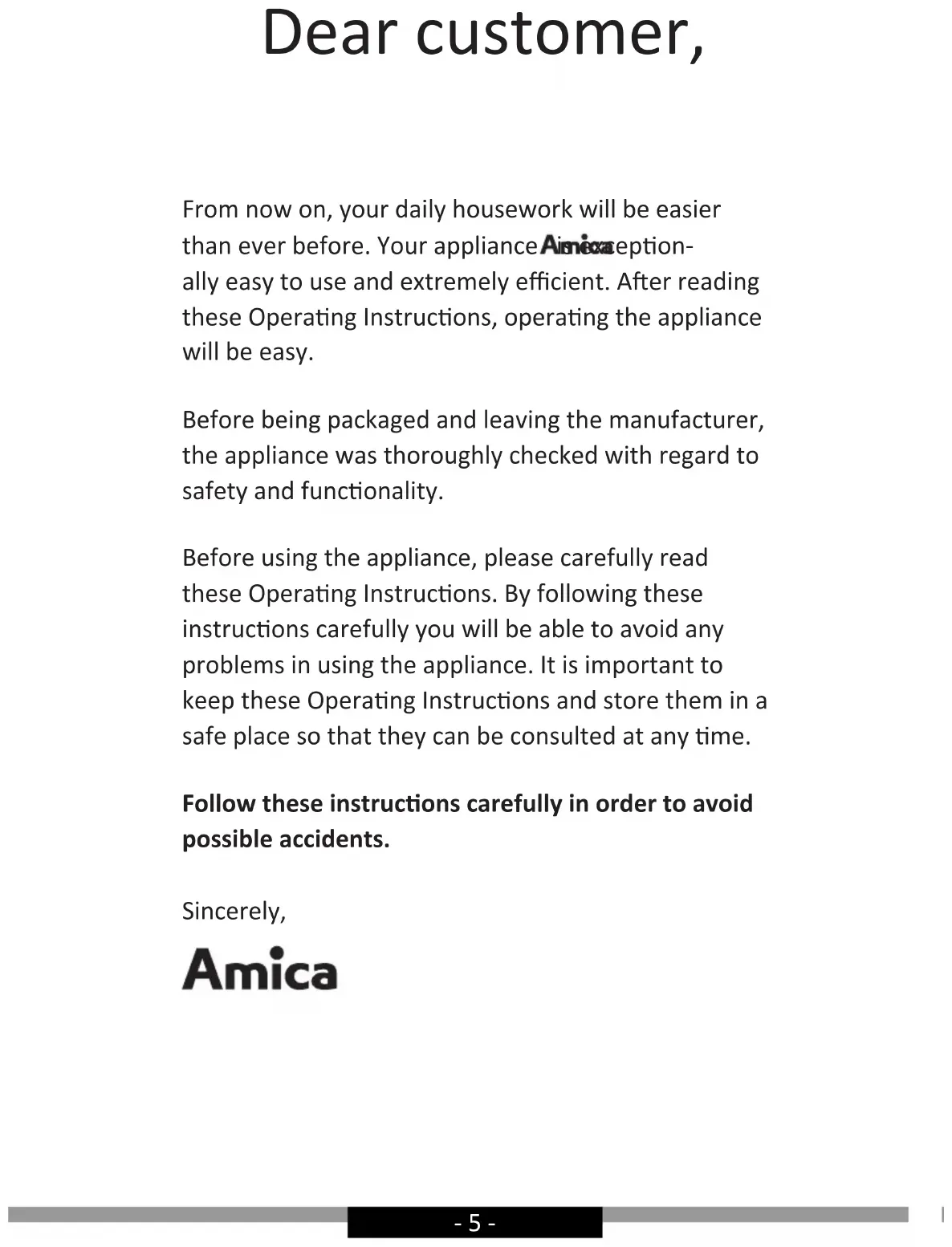 USER MANUAL WKR 341 920 R AMICA