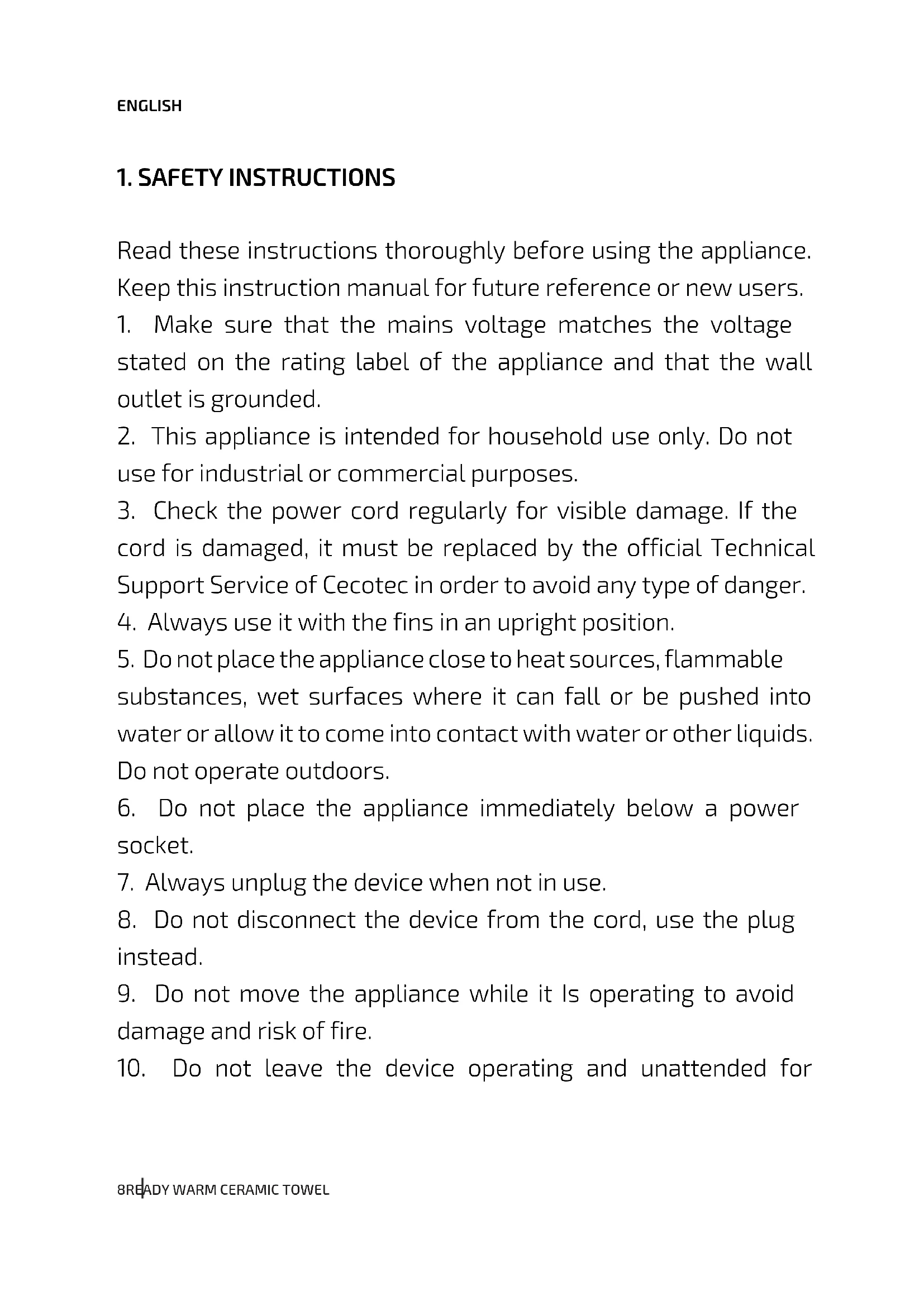 USER MANUAL Ready Warm 9770 Ceramic Towel CECOTEC