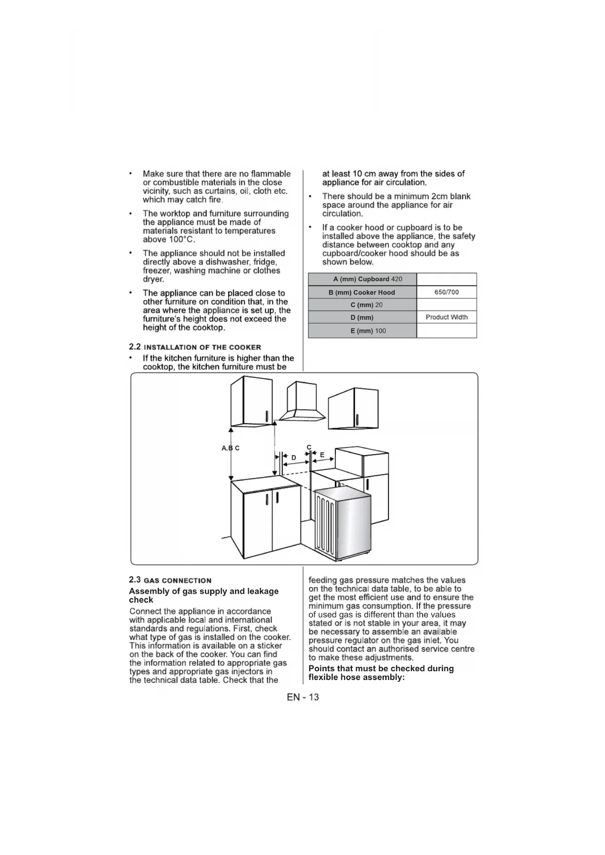 Assembly of gas supply and leakage check of used gas is different than the values Points that must be checked during flexible hose assembly:EN - 14