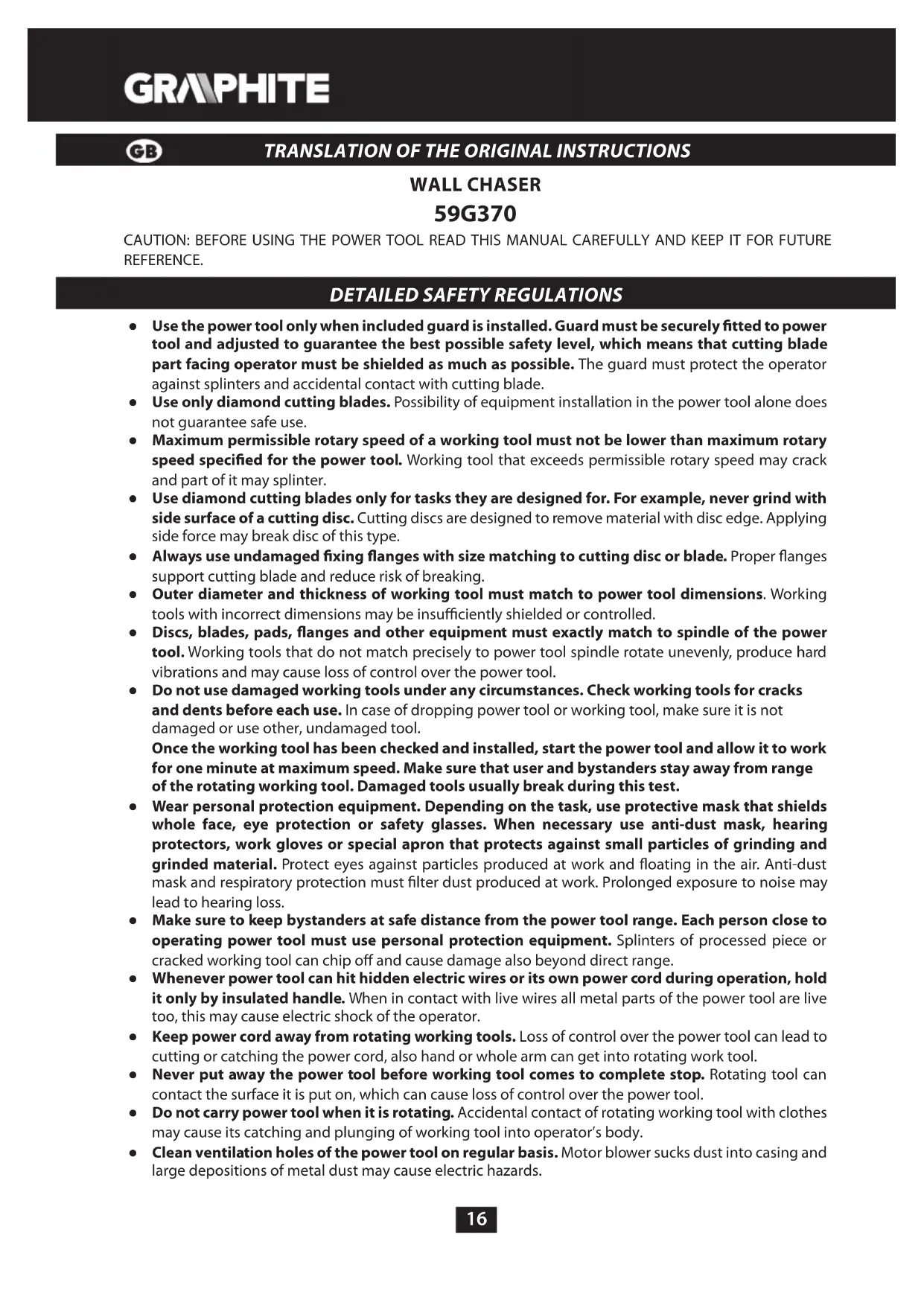 Download the instructions for your Saw in PDF format for free! Find your manual 59G370 - Graphite and take your electronic device back in hand. On this page are published all the documents necessary for the use of your device. 59G370 by Graphite.