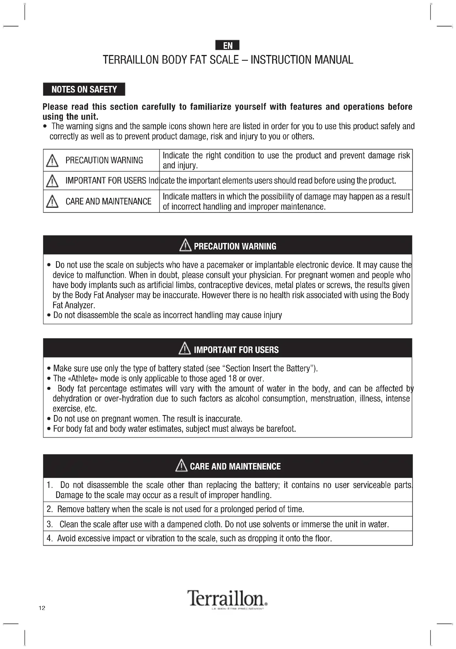 Regular Fit - Scale TERRAILLON - Free user manual and instructions