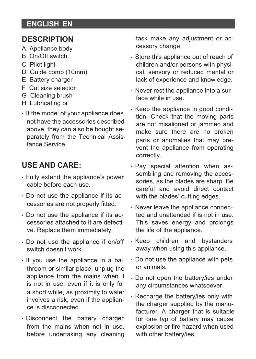 - CAUTION: It is important that the batteries are fully discharged priorEN to its withdrawal from the appara- tus.