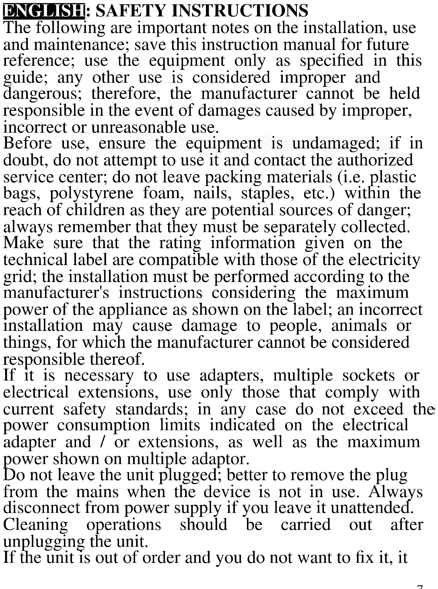 ENGLISH: SAFETY INSTRUCTIONS