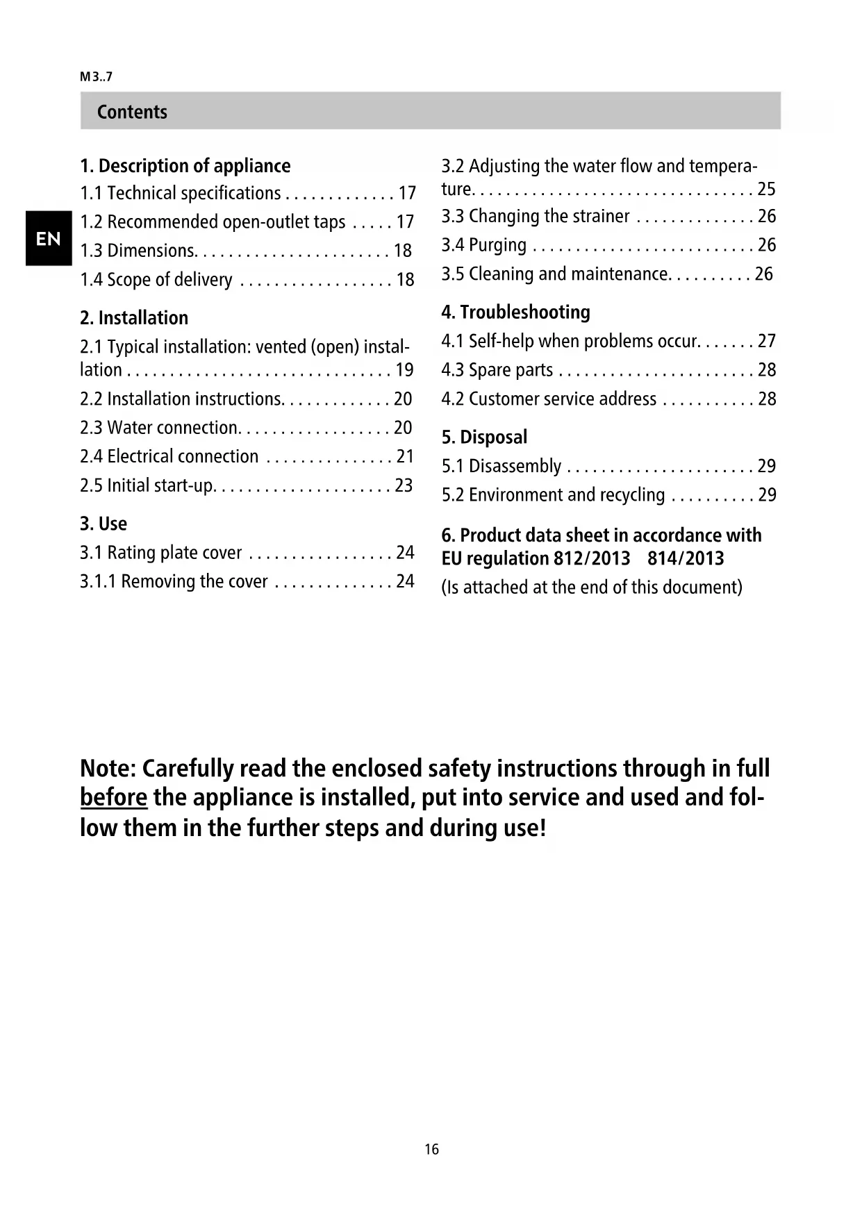 2.1 Typical installation: vented (open) installationM 3..7