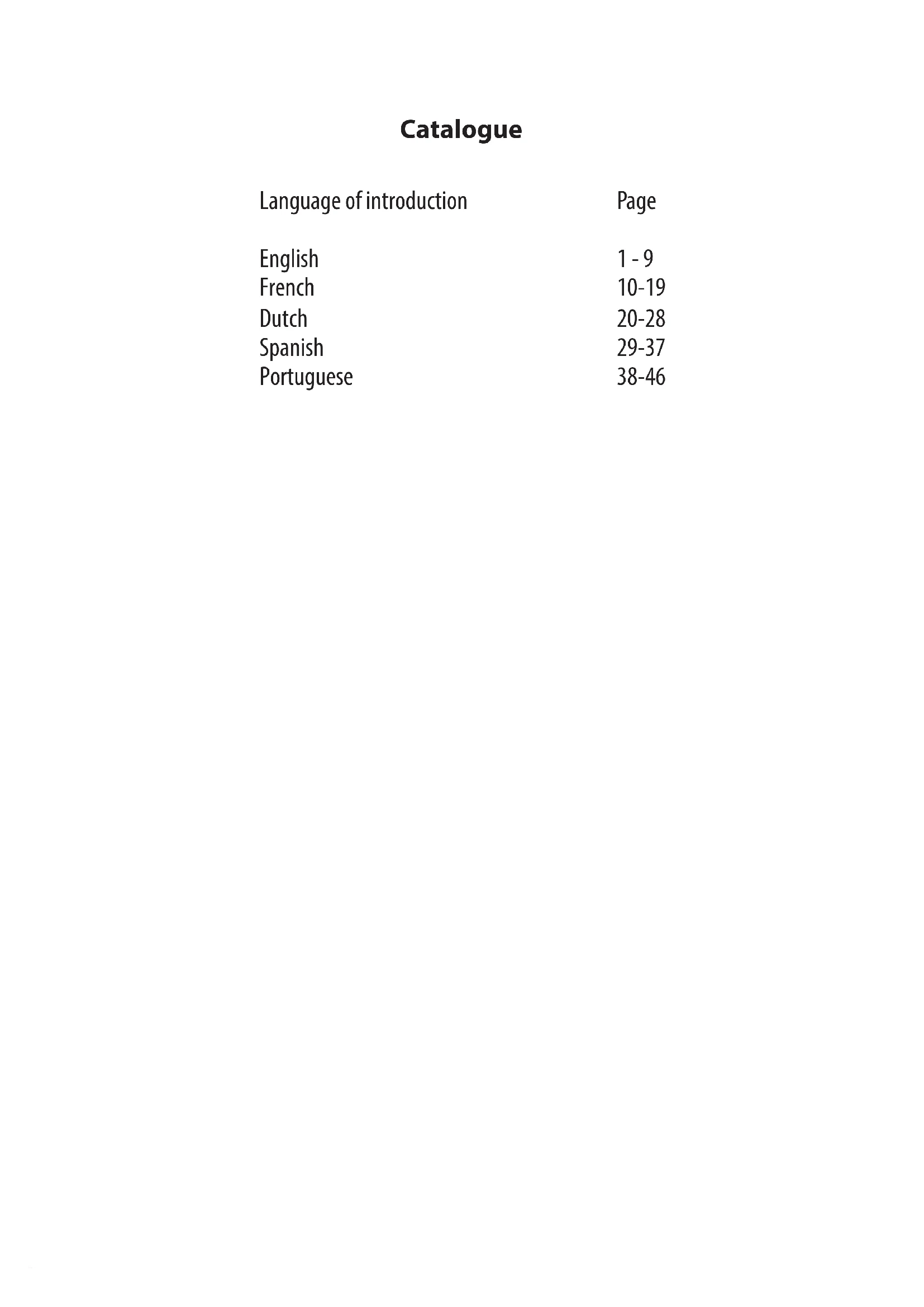 MANUAL DE INSTRUÇOESCatalogue Language of introduction English French Dutch Spanish Portuguese
