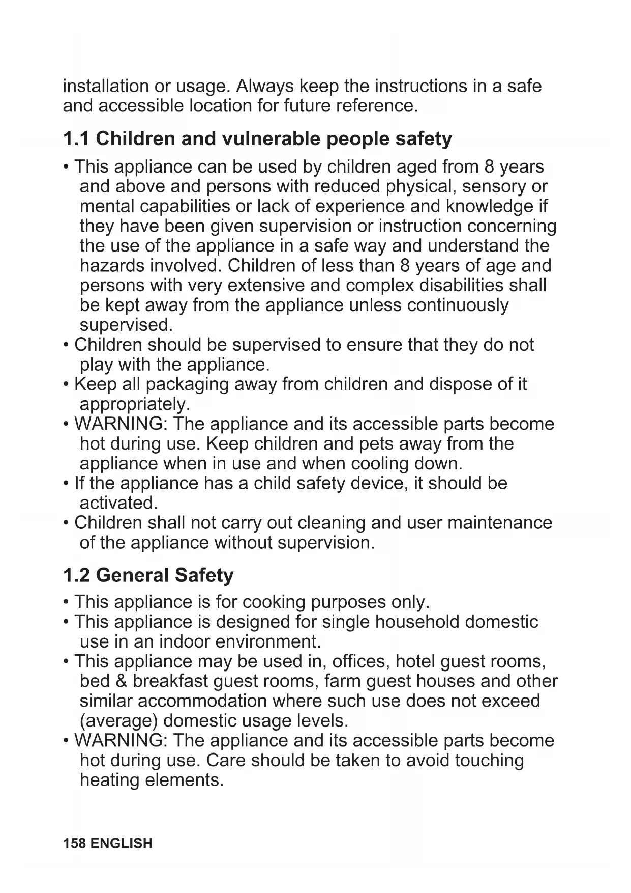 - WARNING: The appliance and its accessible parts become hot during use. Keep children and pets away from the appliance when in use and when cooling down.