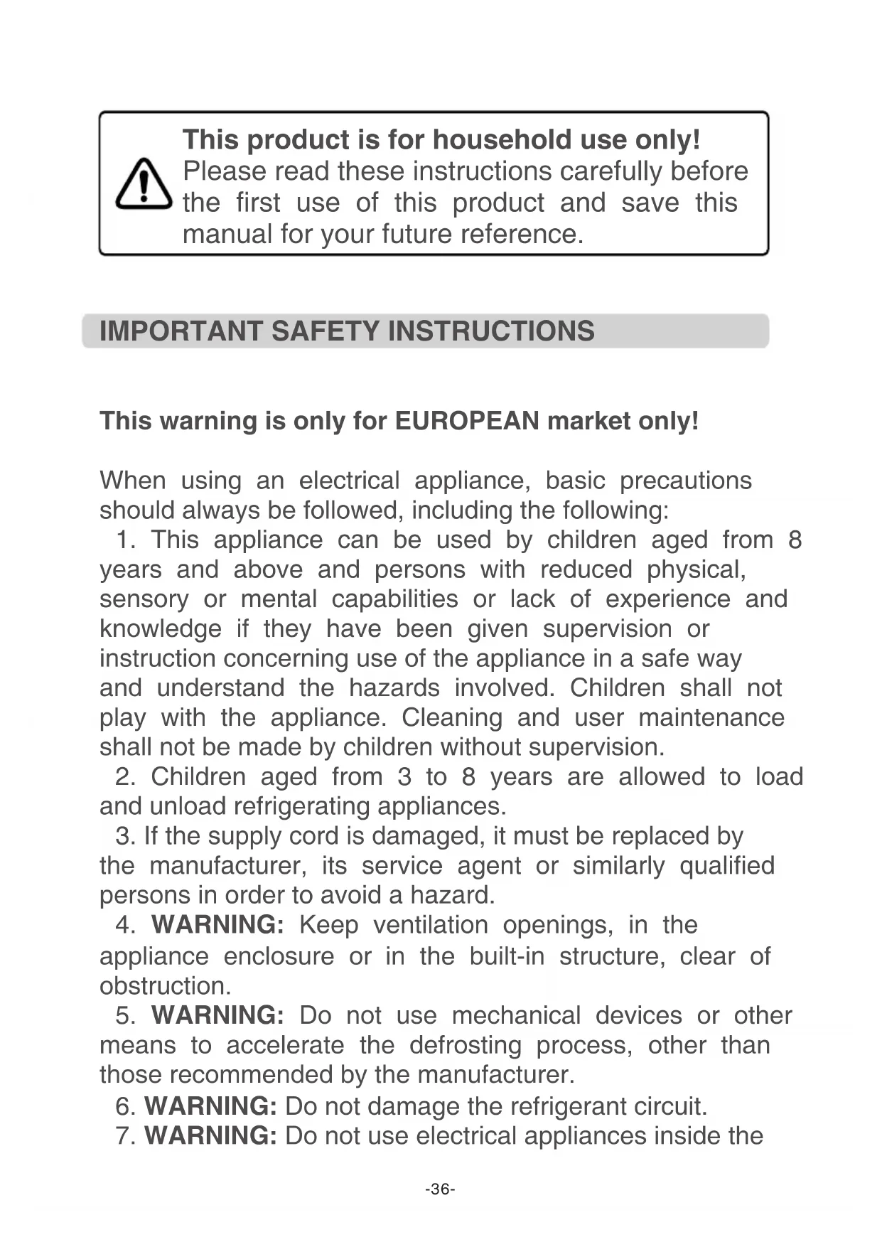 This warning is only for EUROPEAN market only! When using an electrical appliance, basic precautions should always be followed, including the following:
