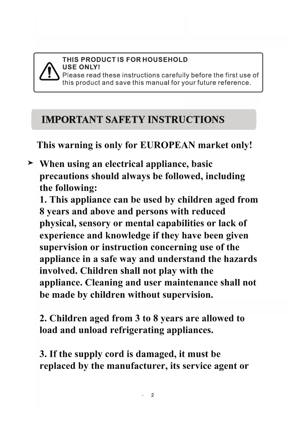 -This warning is only for EUROPEAN market only! When using an electrical appliance, basic precautions should always be followed, including the following: