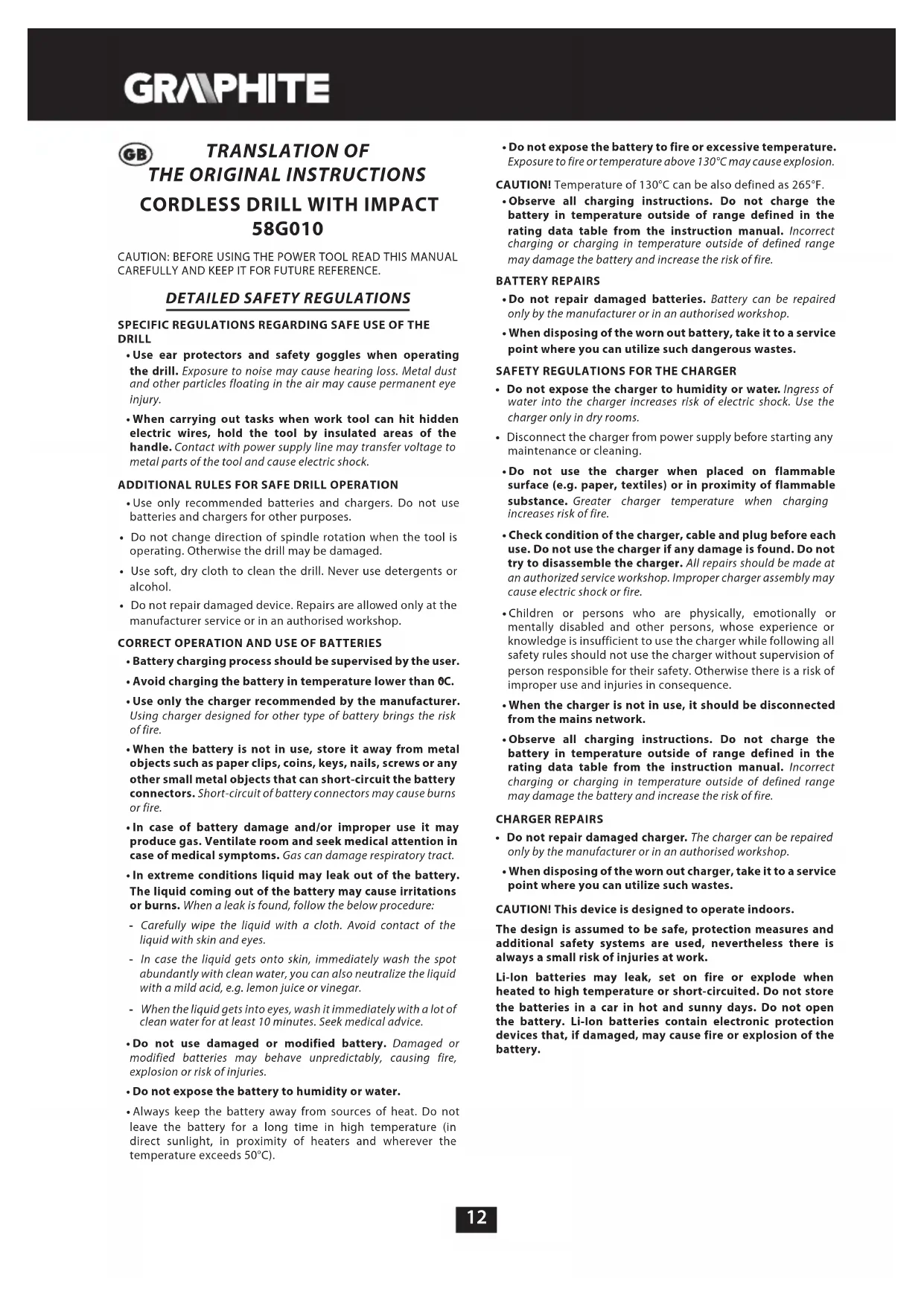 Download the instructions for your Drill in PDF format for free! Find your manual 58G010 - Graphite and take your electronic device back in hand. On this page are published all the documents necessary for the use of your device. 58G010 by Graphite.