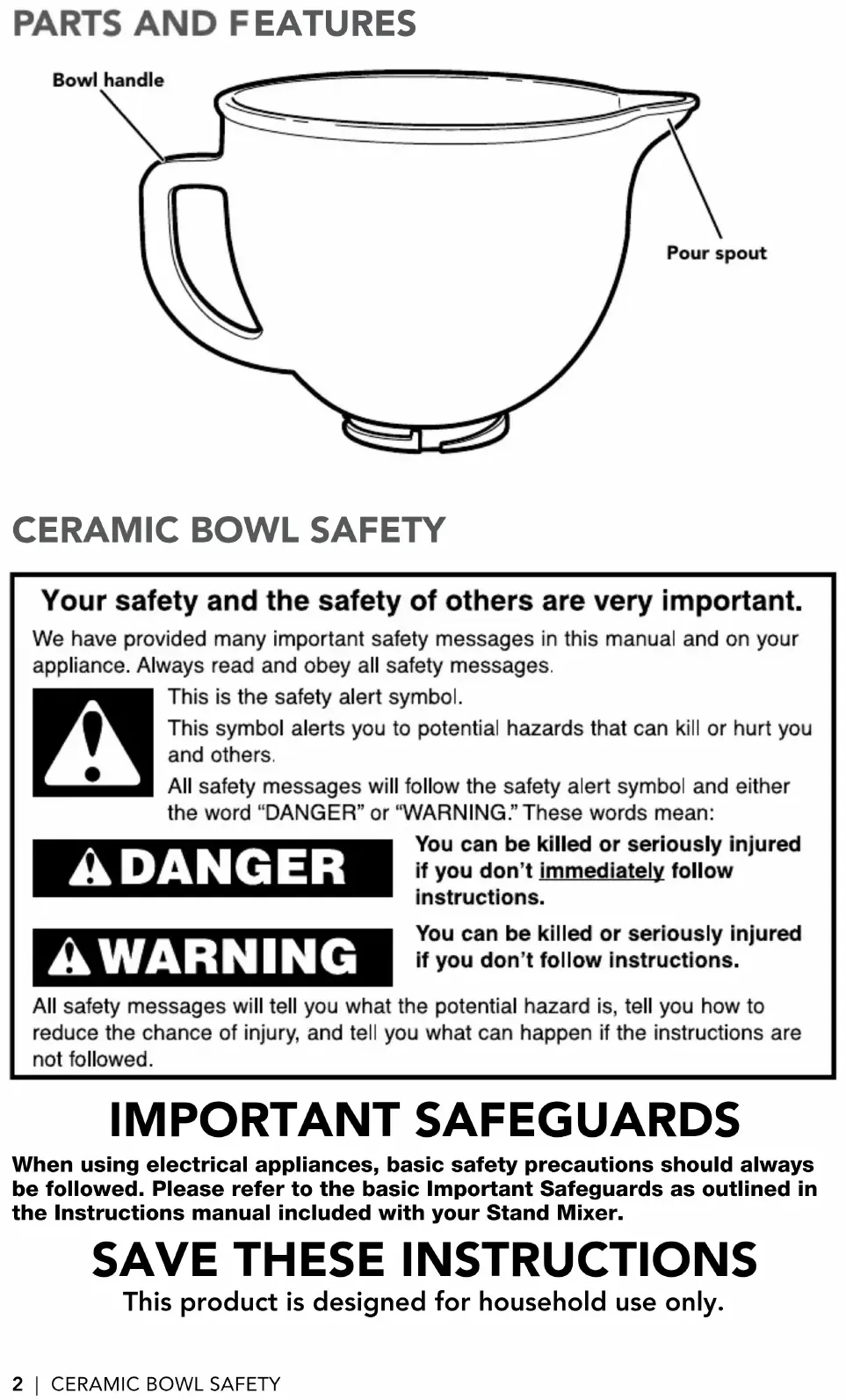 This product is designed for household use only. Bowl handle Pour spoutENGLISH