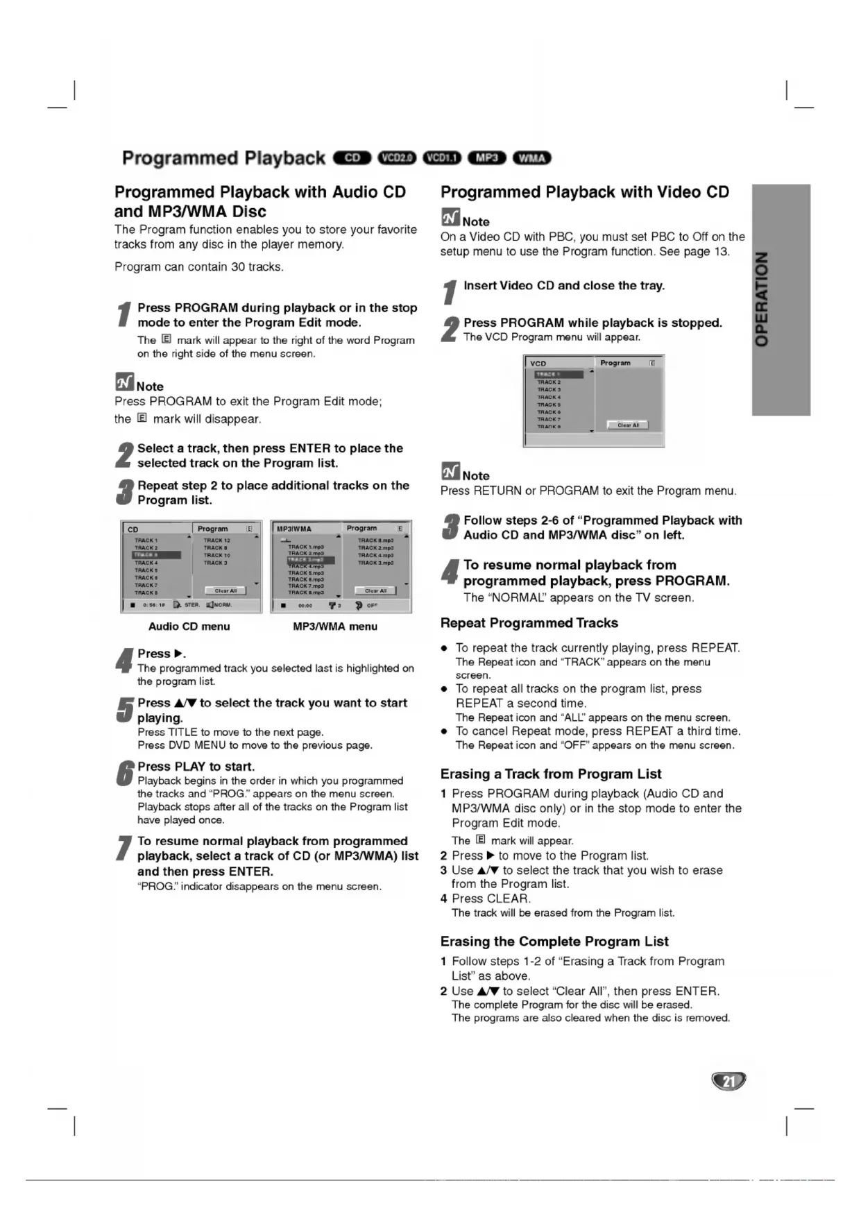 start. Playback begins intheorderinwhichyou programmed thetracksand"PROG."appears the menu screen. Playback stops afterallofthetracks the Program listhave played once.